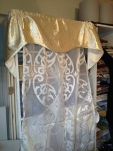こちらの作品は新築のご自宅の小窓のバランスとレースのカーテンをサクサクと縫いあげられました。お引っ越しされた後のお写真が楽しみです。
