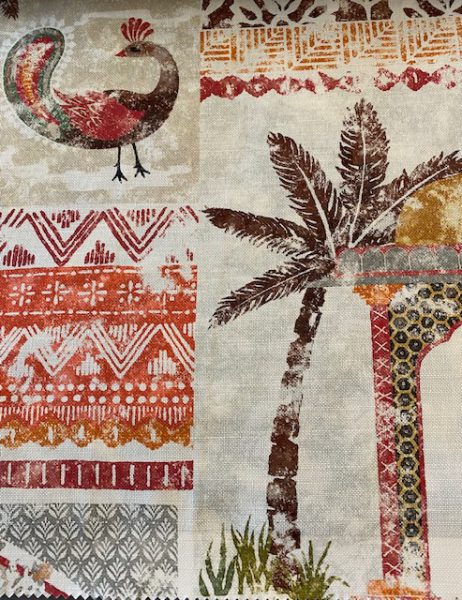 アジアチックなプリント生地。パネルとかにすると絵を飾っているみたい・・和室にも洋室にも合う・・そんな素敵な生地です。