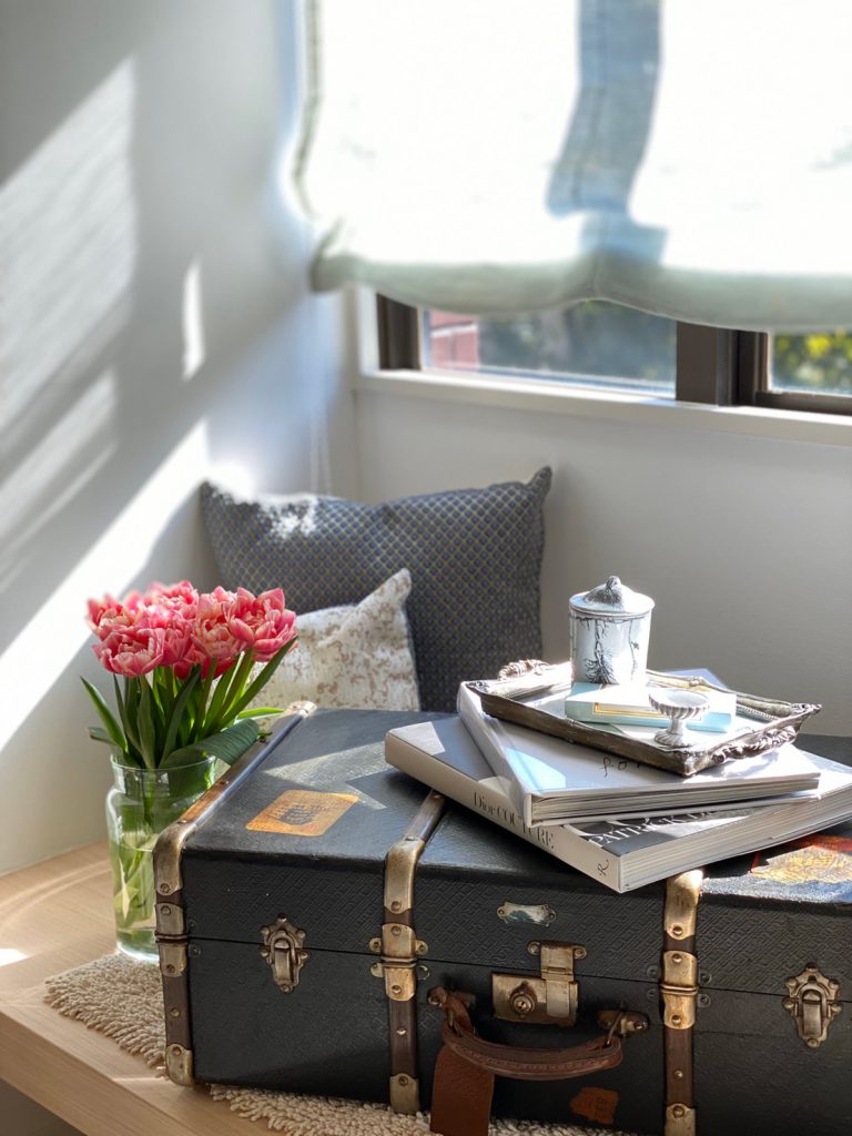 お客様がパリで買ってきたというアンティークのスーツケースと合わせて撮影して頂きました。