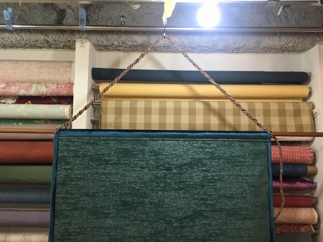 このペルシャ絨毯をアートとして壁に飾りたいと言うお客様のご希望があり、仕様のご説明を受けそしてその場で生地を選択して頂きました。