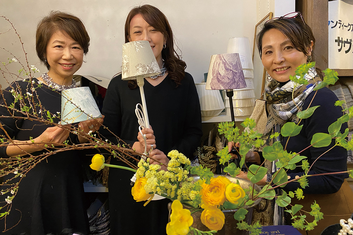 東京でフラワーを中心にご活躍されているアトリエ・フレジエの古川さんと一緒に、ランプシェードのワークショップを開催致しました。
