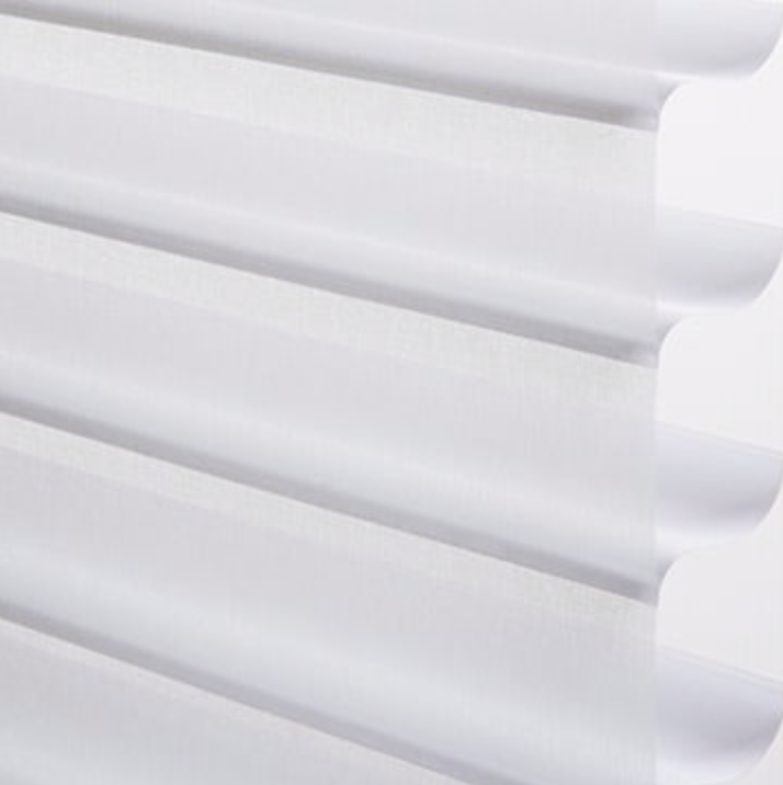 横から見るとハニカム構造。紐の操作によるパタパタ開閉で、レースのように外の景色を透かしたり、ドレープのようにしっかりプライバシーを守ったり、1台2役。