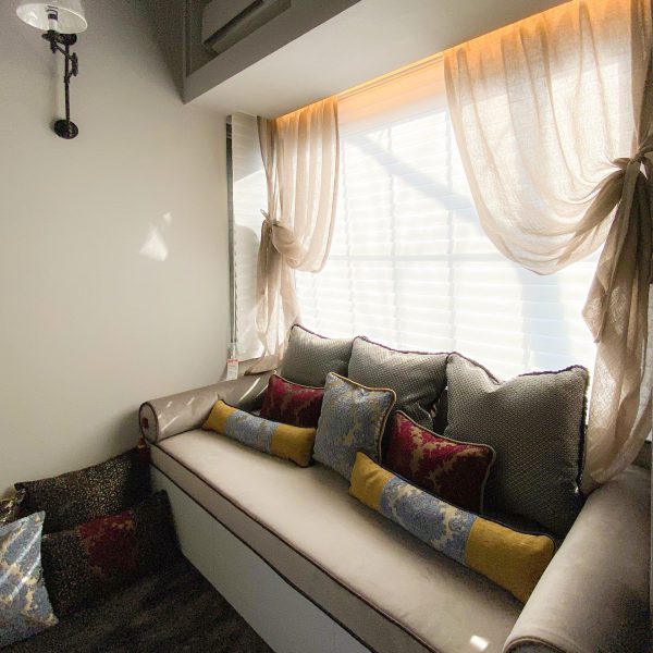 装飾カーテン、シェード、クッション、シートクッション、椅子貼りと、リサブレアができるソフトファニッシング制作を一気に発揮させて頂けた貴重な事例になりました。