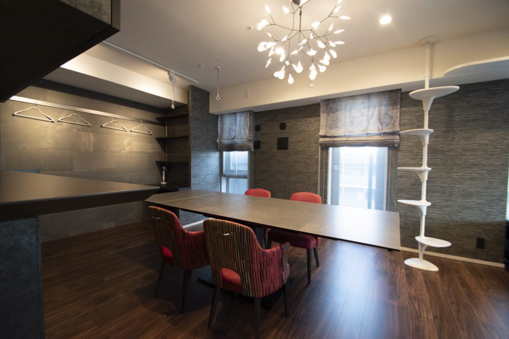 N様のファミリーメンバーである猫ちゃんのために準備したキャットタワー。まるでこの部屋にインテリアとして置いてあるのと思うぐらいピッタリです。このキャットタワーからキャットウォークを通り、お隣の寝室に抜ける猫ちゃんトンネルがあります。猫ちゃん幸せ!!!