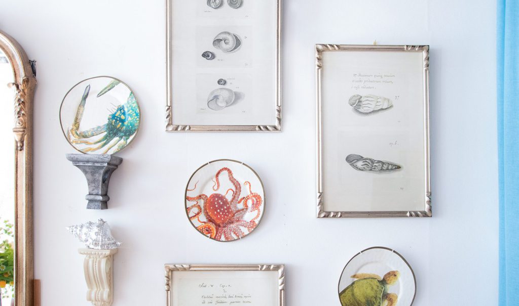 このフレームはコーディネートしやすく大変重宝するアイテムです。「Study of Shells」と言い全6種類の貝殻のアーカイブイラストのアートです。季節によって合わせるお皿を変えると楽しめます(お皿は販売しておりません)。左側にあるウォールブラケットは、ちょっとしたものを飾るのに便利なアイテム。既に壁面にアートを飾っているという方は、ぜひコーディネートして楽しんでみて下さい。