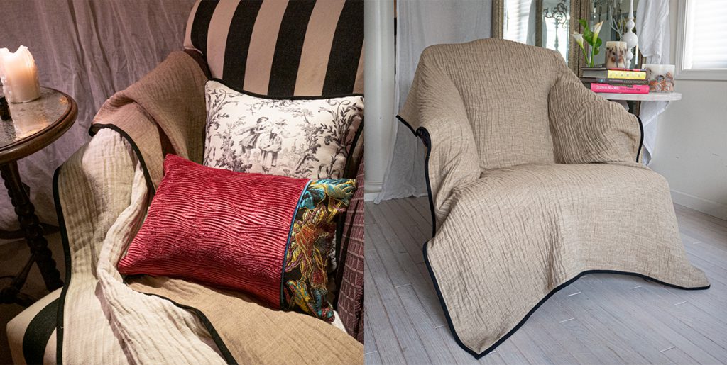 ちょっと脱線しますが、ブランケットも追加しました。コチラはイタリア・Busattiの生地で肉厚たっぷりの綿麻生地。全部で4種類あります。