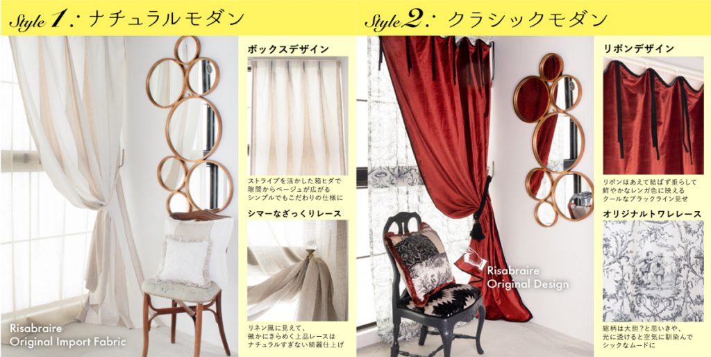 「リサブレアって何のお店?」と思われる方も多いかと思いますが、私たちのルーツはオーダーカーテンなので、一番の得意分野でもあります。