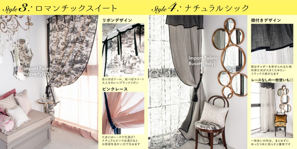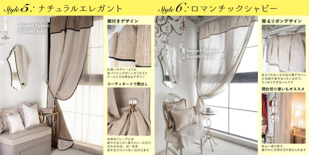 日々、お洋服を着替えるようにお部屋の空気を入れ替えるようにカーテンを楽しんで頂きたいという想いで、この企画をお送りしております。