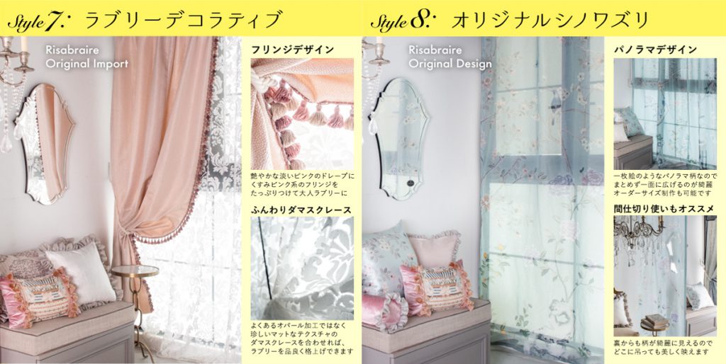 ご紹介するアイテムはカーテンやタッセル!オーダーメイドでもレディメイドでもない、私たちが生地をセレクト・デザイン。リサブレアのコーディネートと共にスタイリングをご紹介致します。