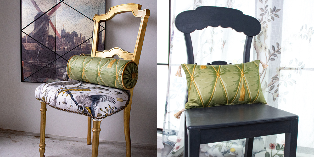 弊社では通常、これらの生地を使い様々なインテリアアイテムをオーダー制作しております。