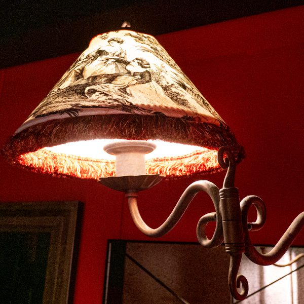 赤の壁面に映える、リサブレア定番人気のトワレ生地コーディネートに♪
