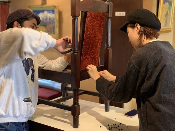 どこまで使われるのかは分かりませんが、そこで使われていたアンティークの椅子をよみがえらせたい!との事です。