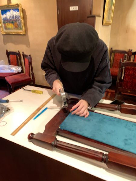 ここから張り替えに使う生地の裁断をします。