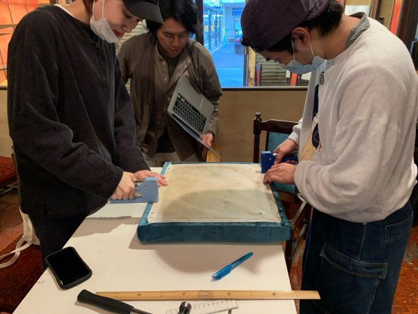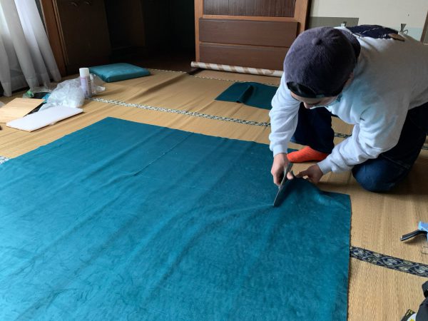 裁断するのに広い場所が必要だったため、2階に上がって和室で作業を行います。