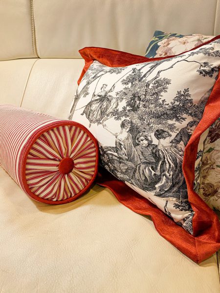リサブレアではオリジナルの表情豊かなクッションを販売していますが、クッションがインテリアにどのように大きな役割をするかお伝えしたいです。インテリアのアクセサリーとしてクッションはマストアイテムですが、それだけではなくアートのようにお気に入りのクッションを持っているだけでどれだけ幸せな気持ちになれるか。毎年海外のメーカーから素敵な新しいファブリックが発表されます。私たちは絶えずそれを目にして、これっと思うものはサンプルで購入したり、サンプル帳を購入したりしていますが、それらがクッションに変身します。その生地の組み合わせをいろいろ考えながら生地の持つ魅力に魅せられています。