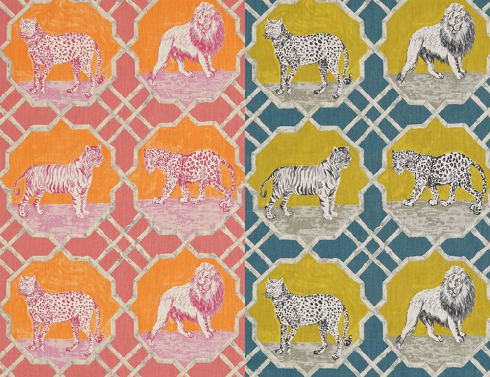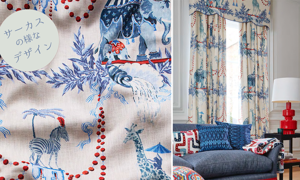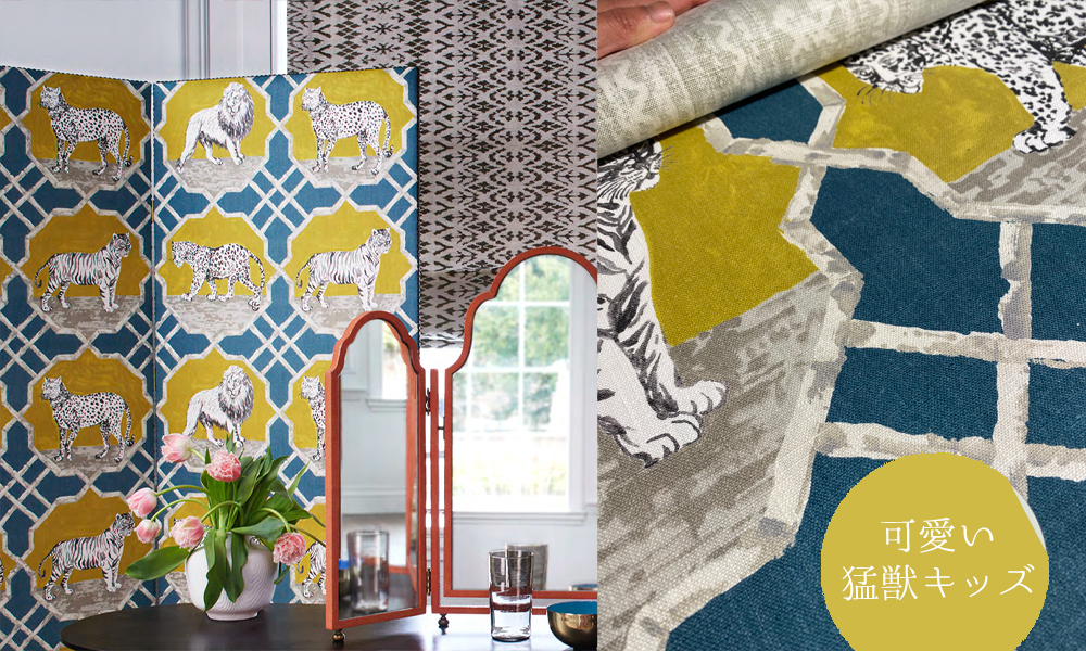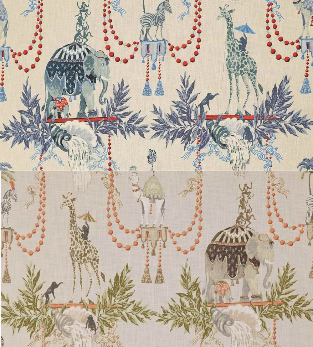 インスピレーションは、伝統的なフランスのゴブラン織生地のデザイン。シマウマ、象、ラクダ、キリン達の間で駈けずり回り悪さをするお猿さん。