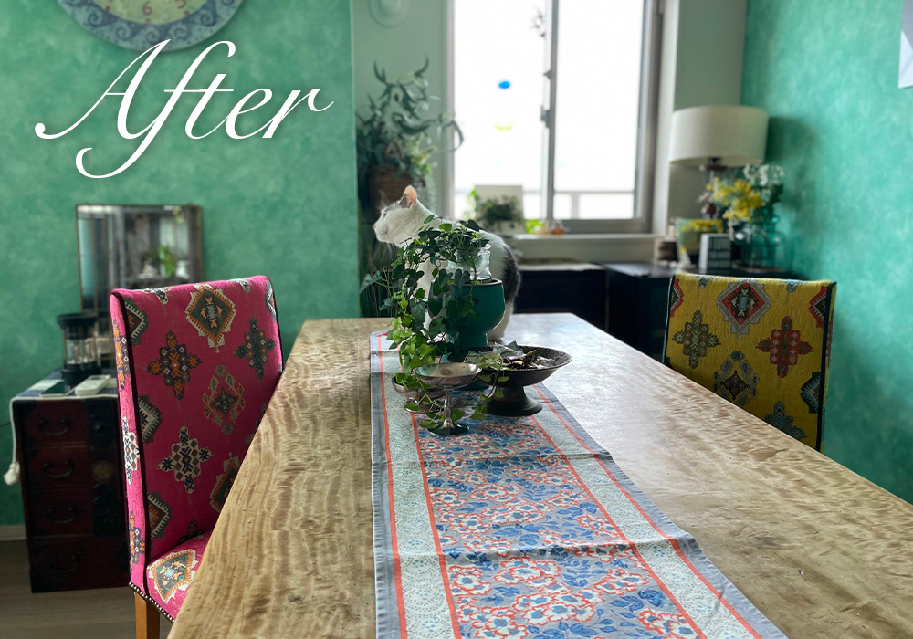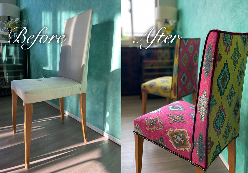 まるで海外インテリア?!椅子貼りから生まれ変わる空間