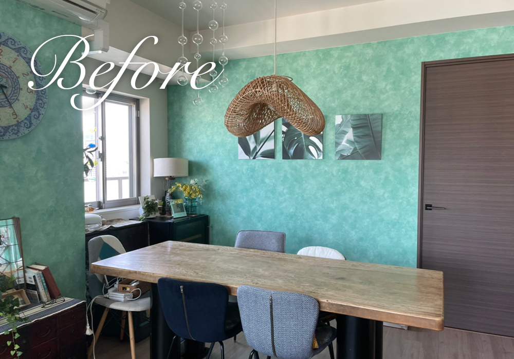以前は椅子の種類や貼り生地は敢えて揃えずに、インテリアを楽しんでいらっしゃいました。ウォールデコにも注目ですね!