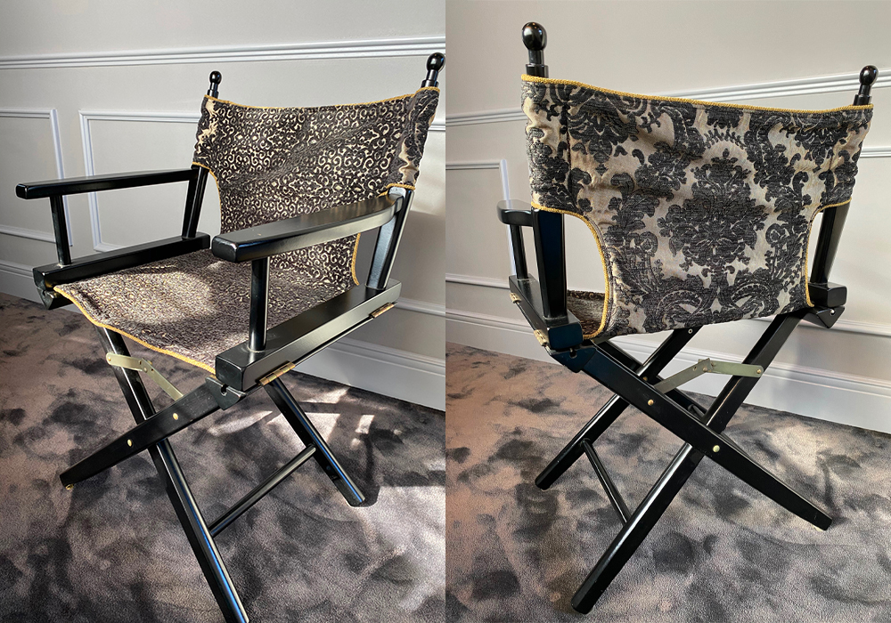 M様が弊社にご来店された時に一目惚れしたのがこちらの生地でした!この折りたたみチェアは確かFENDIのものだったと思います(元々の生地もとても素敵でした)