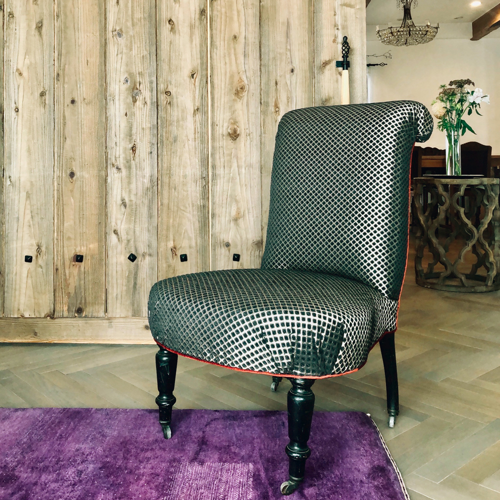クラシックな椅子との相性は◎ 元々はアイボリー系の貼り生地でしたが、モダンな印象に生まれ変わりました!生地の厚みがこの写真から伝わりますでしょうか?