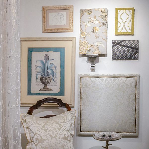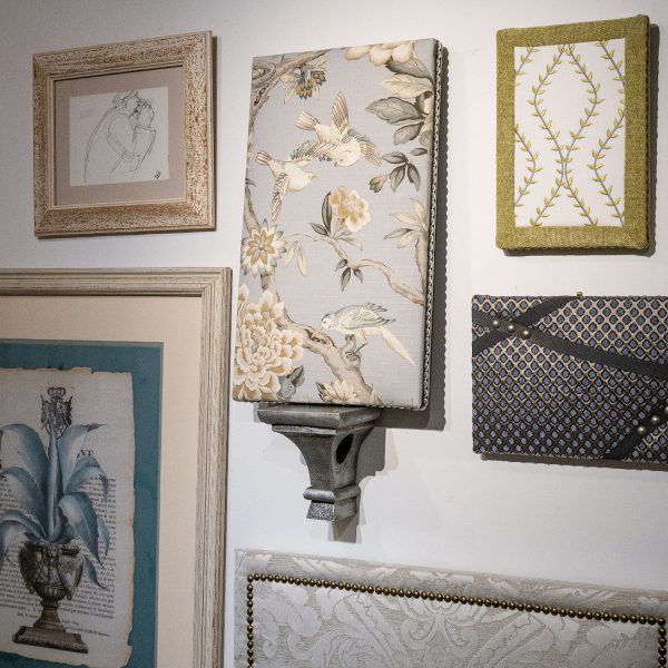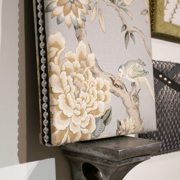 続きましてブルーグレーのシノワズリ生地で作ったファブリックパネル。