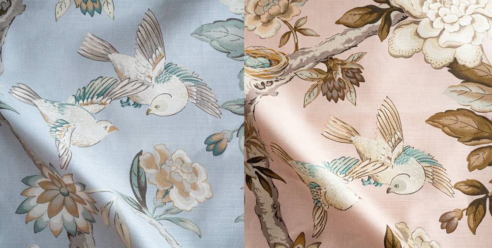 右側:Chinoiseries Mudan Blush Pink ¥7,200/M(税込)137cm幅 (10cmからご購入可能)