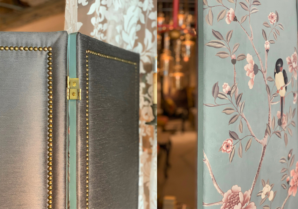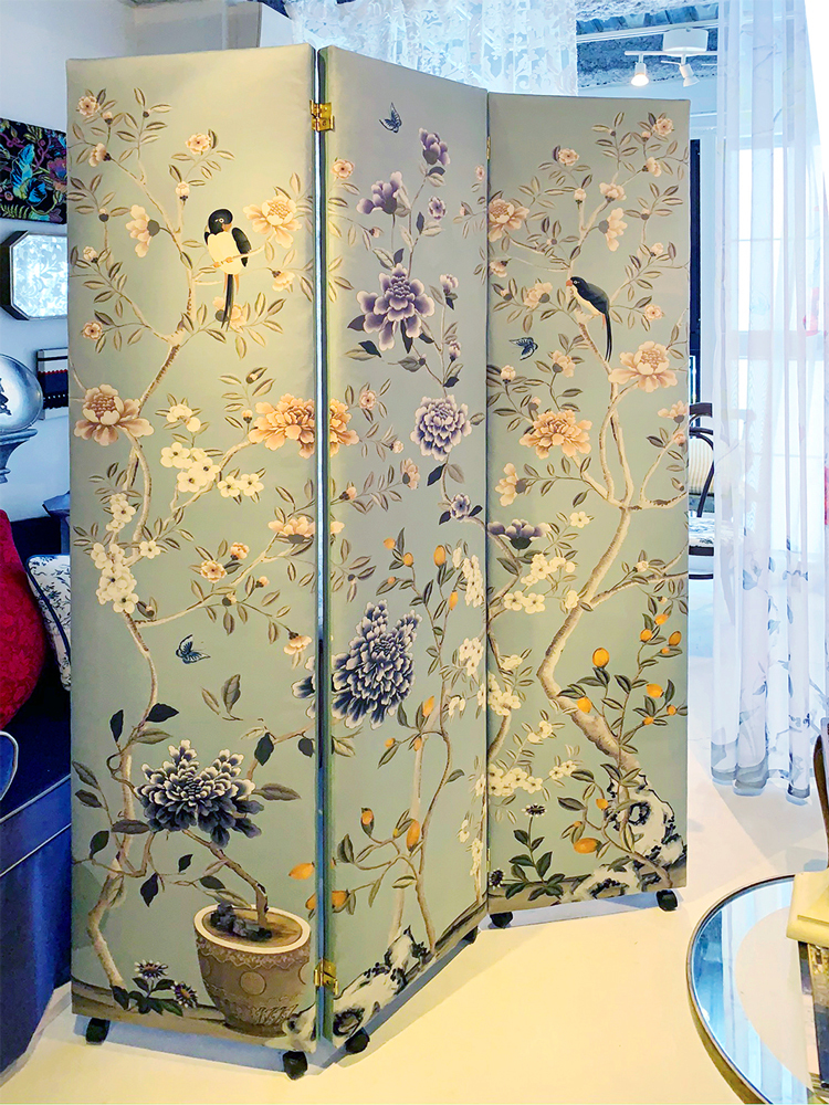 「オンライン会議の時の背景になるシノワズリのパーティションはありますか?」とご質問頂いたことからスタートしました。実はこの生地が完成するまで何度も失敗しているのですが(涙)立派なパーティションが完成し喜んで頂き一安心。