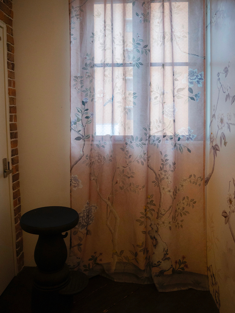 オリジナルのシノワズリ生地をカーテンや椅子貼りに!