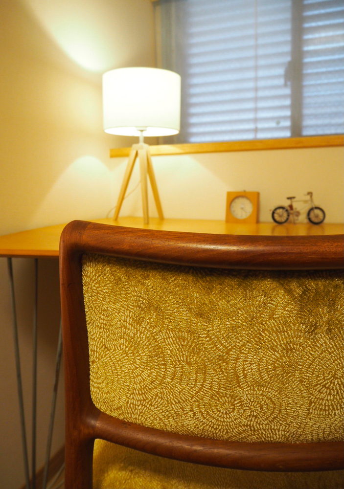 続きましては、ベッドルームのデスク用の椅子。こちらはデンマークのアンティークチェアだそうです。
