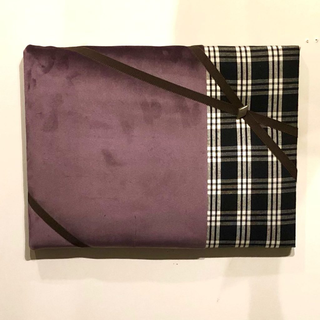 田中 「渡部さんのファブリックパネルは、紫のベルベットが上品で、黒のチェック柄が目を引きます。チョコレートのような茶色のリボンがプレゼントみたいで、お部屋に飾れば目を楽しませてくれること間違いなしです。」