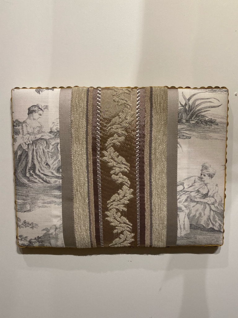 渡部 「田中さんが作ったファブリックパネルは、女性の絵柄がプリントせれた生地を使用しています。センターに使われている生地の色合いは、ベージュを中心に使われており落ち着いた雰囲気の部屋にピッタリです。」