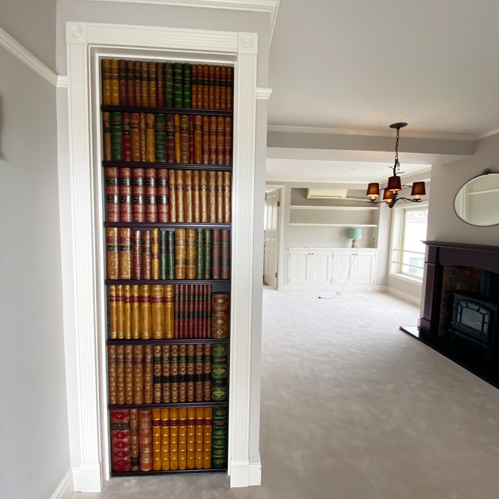 そして、先ほどチラリと見えた本棚に見える隠し扉はこちらです!まさにハリーポッターの世界観ですよね。壁紙ではなく凸凹しているので本物の本棚に見える不思議な建材。山田さんは「どうしてもこれをしたかった!」とまたまたキラキラした目で仰ってました。