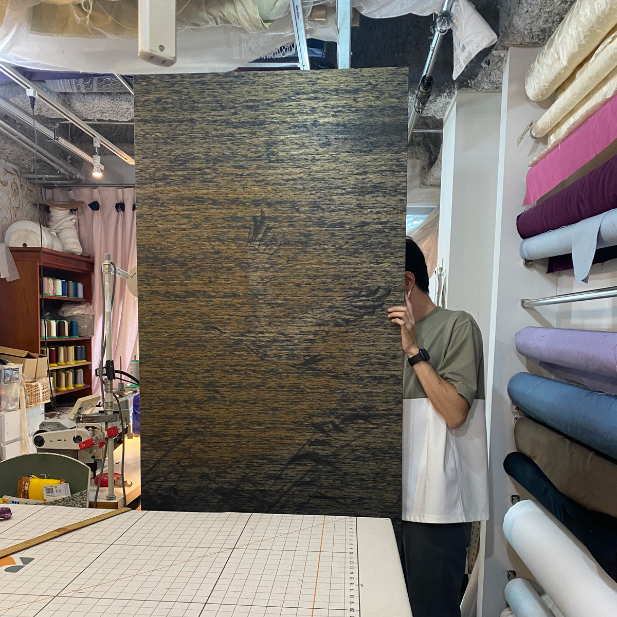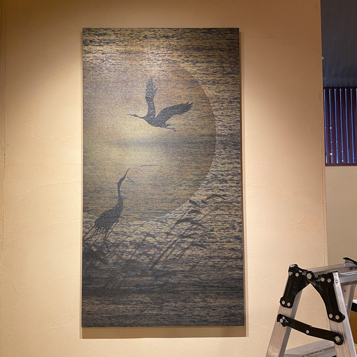 前置きが長くなってしまいましたが、弊社のシノワズリを「蓼科親湯温泉」様にて御採用頂き、その流れで「上諏訪温泉しんゆ」様に今回は湖と月をテーマにパネルとランナーを制作させて頂きました。