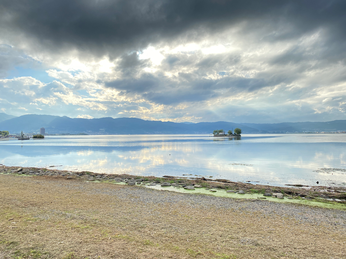 神々しいと言う表現が相応しい。水面に写る山並みや雲の合間から漏れる太陽の光が何とも美しいのです。人も少なくゆっくりと散歩できるので、それもまた魅力の一つですね。