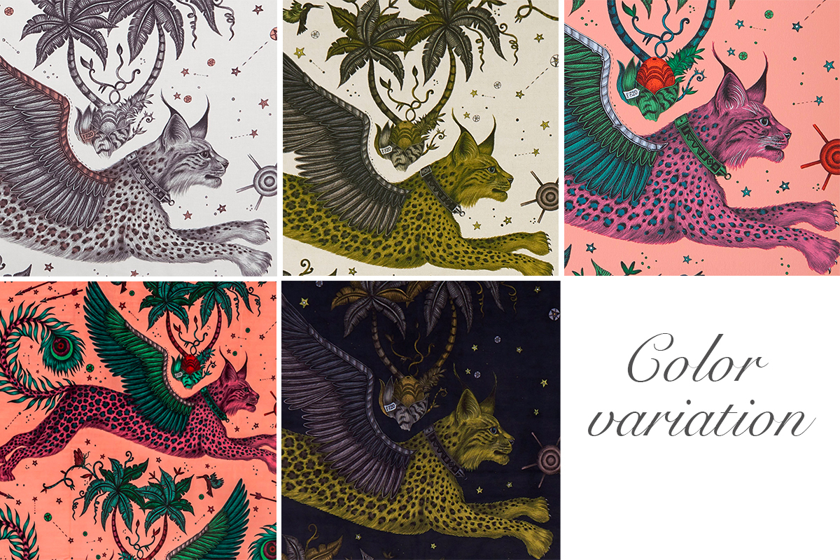 山猫と聞くと少し怖いイメージをお持ちの方もいらっしゃるかもしれませんが、Emmaの描く自然界はシュール且つファンタジック。そしてこのカラフルなカラーバリエーションは私たちの心を掴んで離しません!