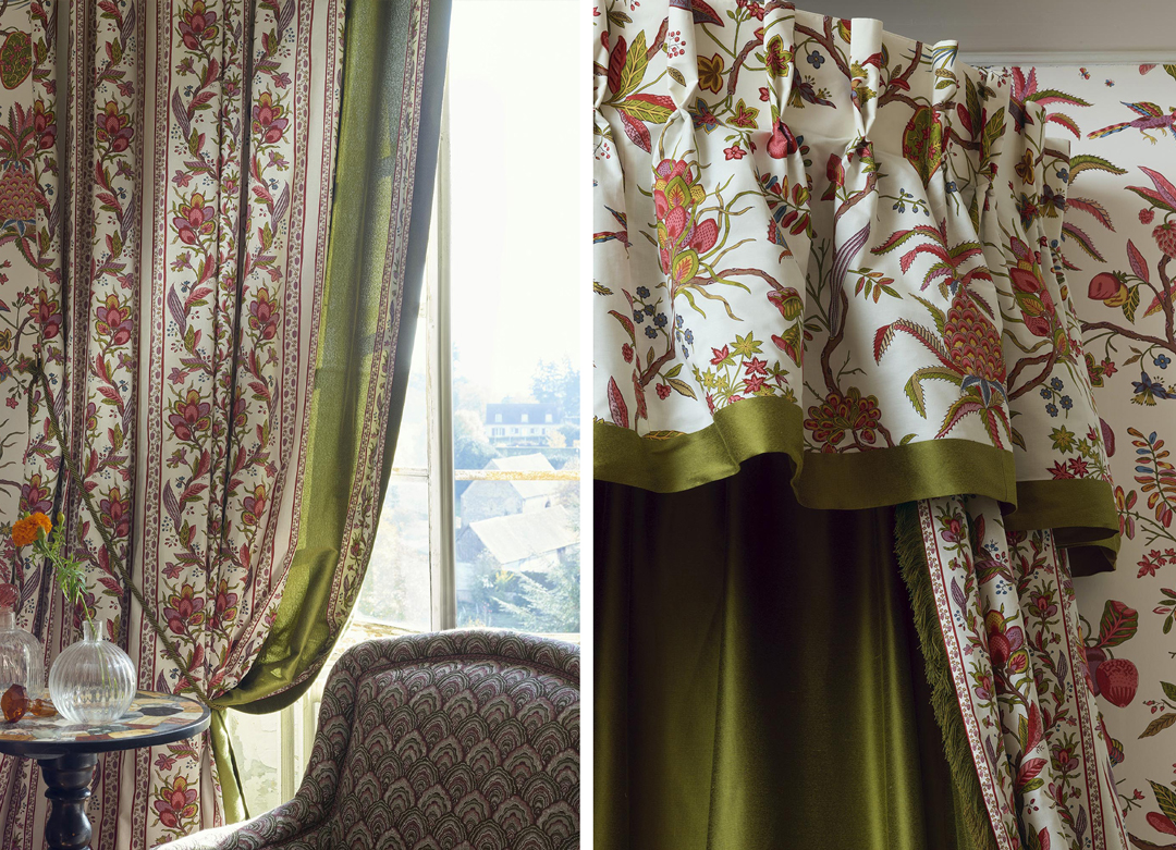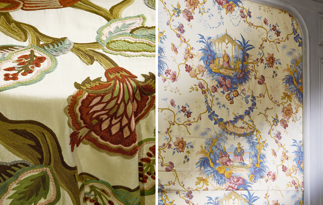 今も昔も、ヨーロッパは交易を通して様々な国々からインスピレーションを受け、自分たちの手でデザインをしています。パリ装飾美術館やトワルドジュイ美術館に保管されているアーカイブも使われている壮大なコレクション。刺繍やスクリーン印刷など、贅沢な仕様で展開される生地や壁紙は素材にももちろん拘っております。