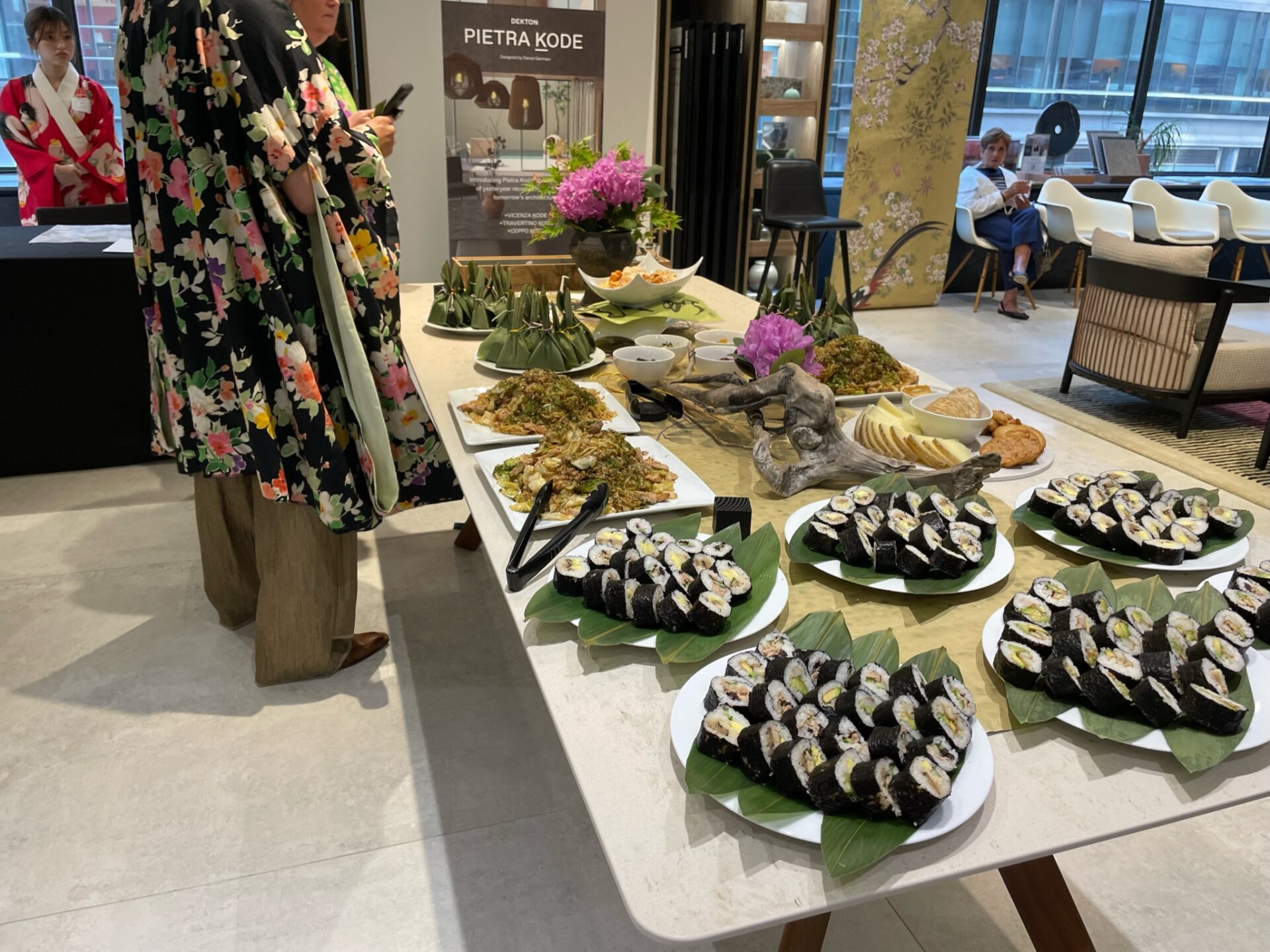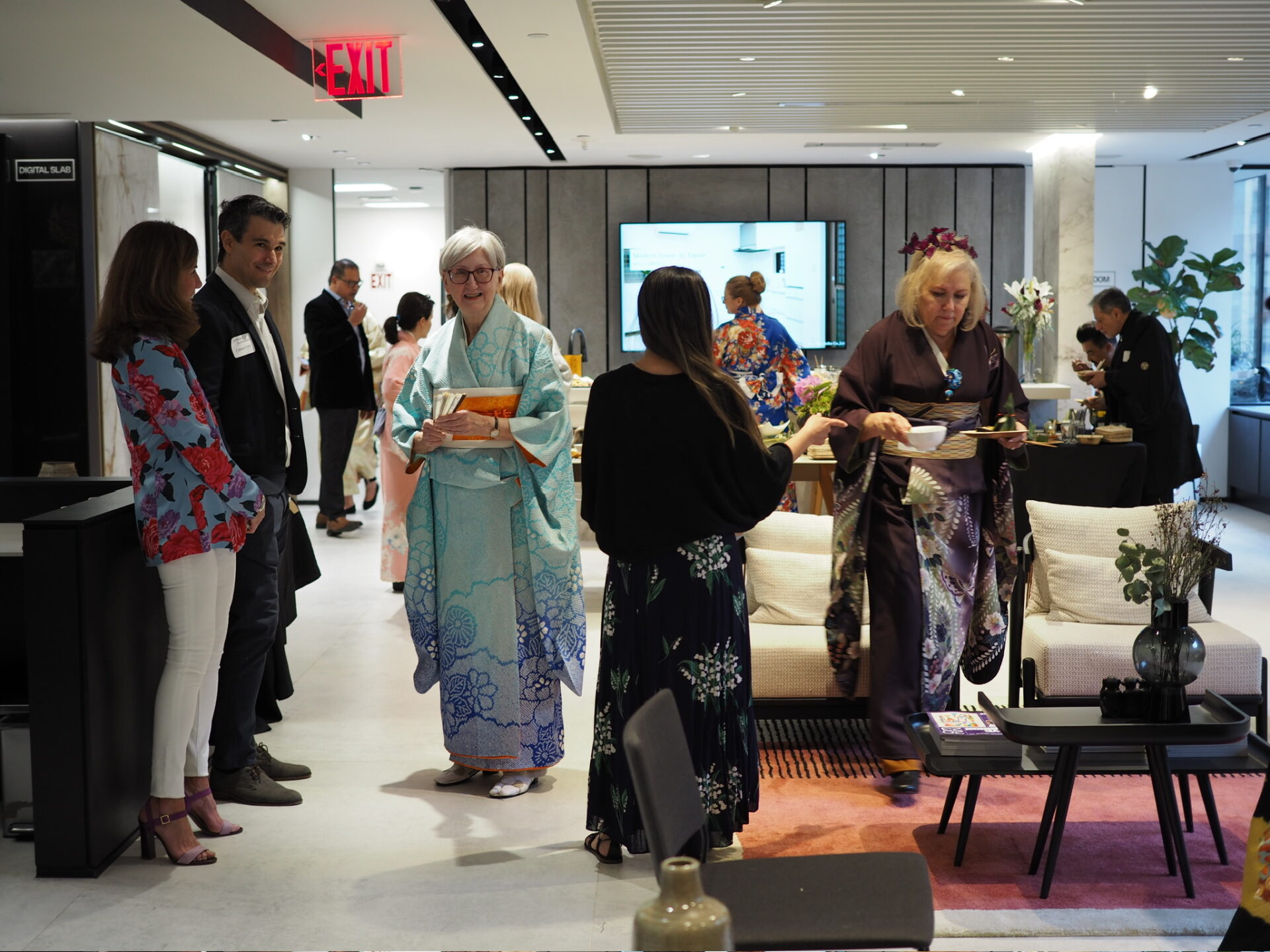 20日はFARROW&BALL (イギリスの塗装メーカー)のNYショールームで下記セミナーを開催、21日はICFF(INTERNATIONAL CONTEMPORARY FURNITURE FAIR)を見学、22日はデザインセンターにある雑貨のショールでセミナーを、そしてデザイナーショーハウスを見学、夜はTOTOのニューヨークショールームでパーティ、23日はデザインセンター家具のショールームでセミナー、そしてさいごに23日の夜にはコンセンティーノhttps://www.cosentino.com/のニューヨークショールームでパーティをしました。ニューヨークの方もみんな着物姿、私たちも着物から食材からトランクに入れて日本から運び、料理も朝から山崎と以前にリサブレアで働いていた鶴田さんが頑張ってエアビーアンドビで作っていきました。