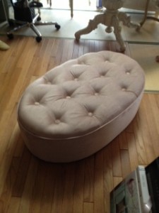 レッスンでは、初めての試みの結構皆さんがご希望されていました、埋め込みの深いくるみボタンのスツールの製作をしました。 ベロア調のこのデザインにぴったりの生地を選択され、少し出来あがっては、生徒さんと喜びを分かち合いながら4時間程で完成され御持ち帰りになられました