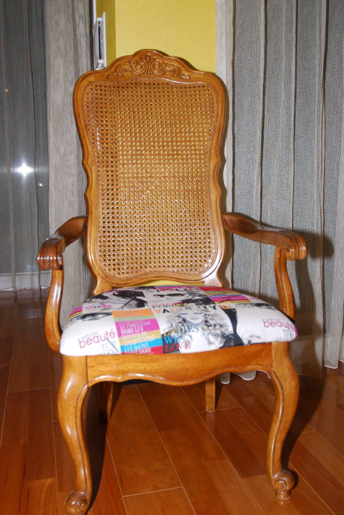 最近ヨーロッパから直輸入したモダンな椅子張り生地。これを選んでいただけるとは嬉しい限り、しかもこのクラシックな椅子に。