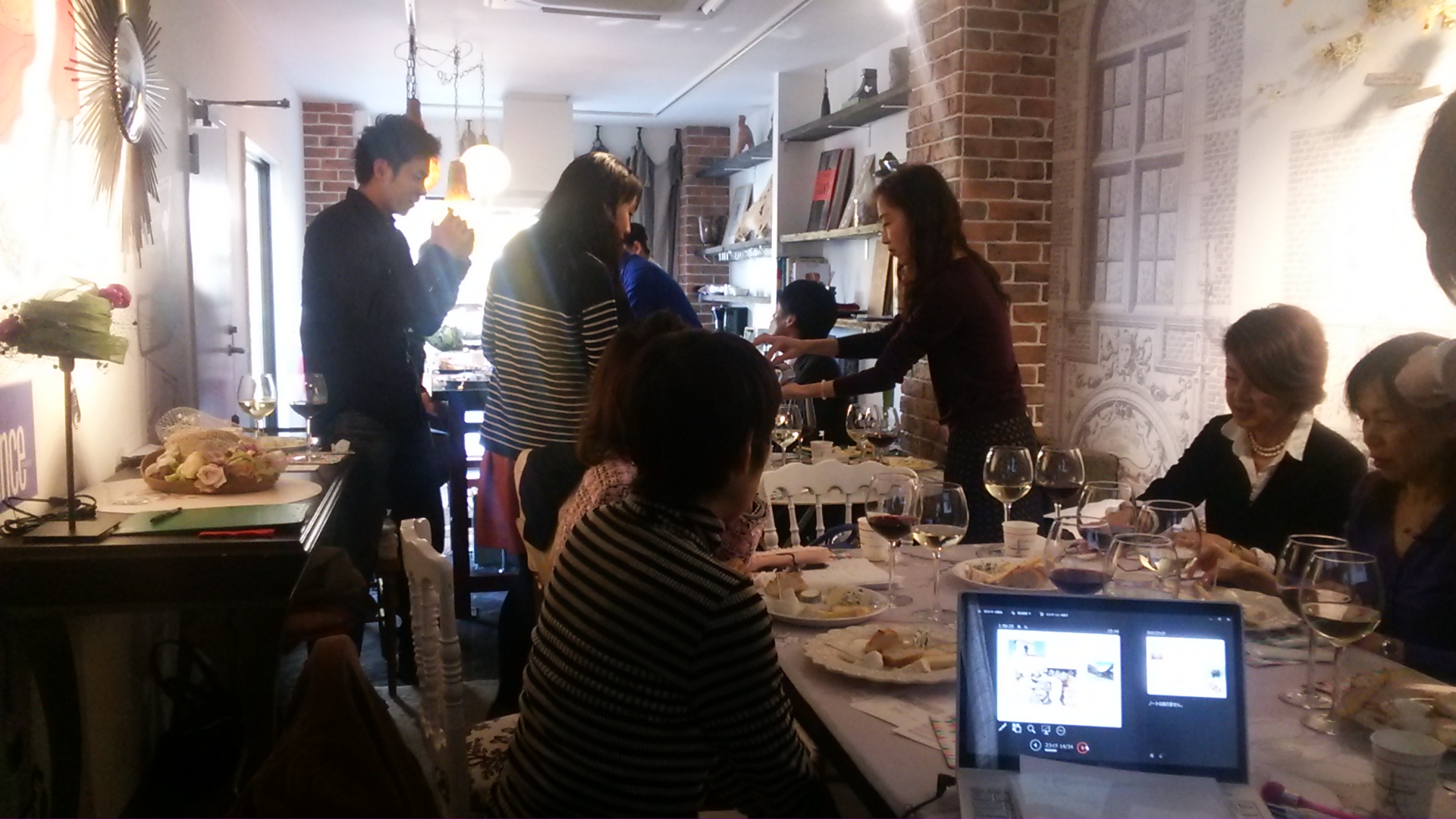 今日は石井先生のチーズのセミナーです。なんと14名です。チーズのことを知れば知るほどチーズを楽しめる。お勉強もしながらパーティです。