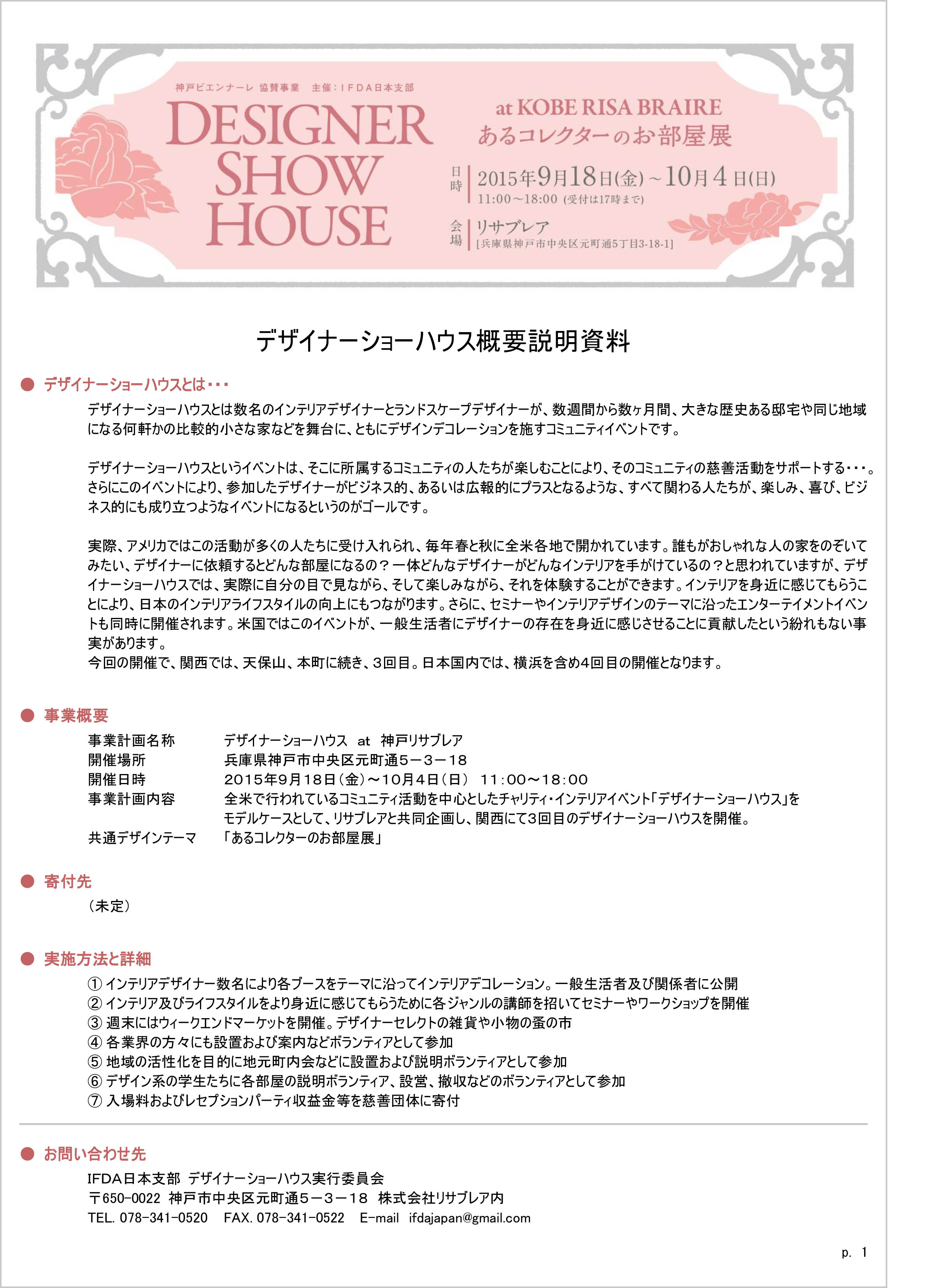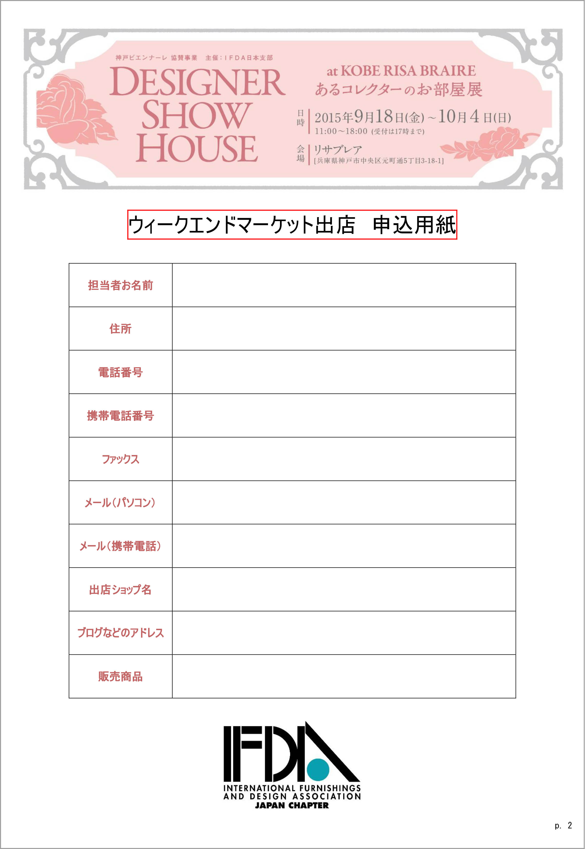 今年9月18日から2週間IFDA主催チャリティイベント デザイナーショーハウスをリサブレアで開催いたします。詳細は下記の通りです。その時に5階屋上で作品を販売していただくマーケットをいたしますので、是非皆様出店ご検討お願い申し上げます。