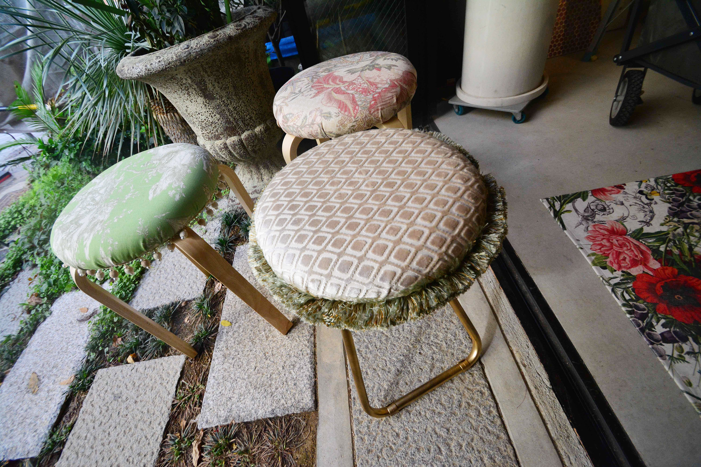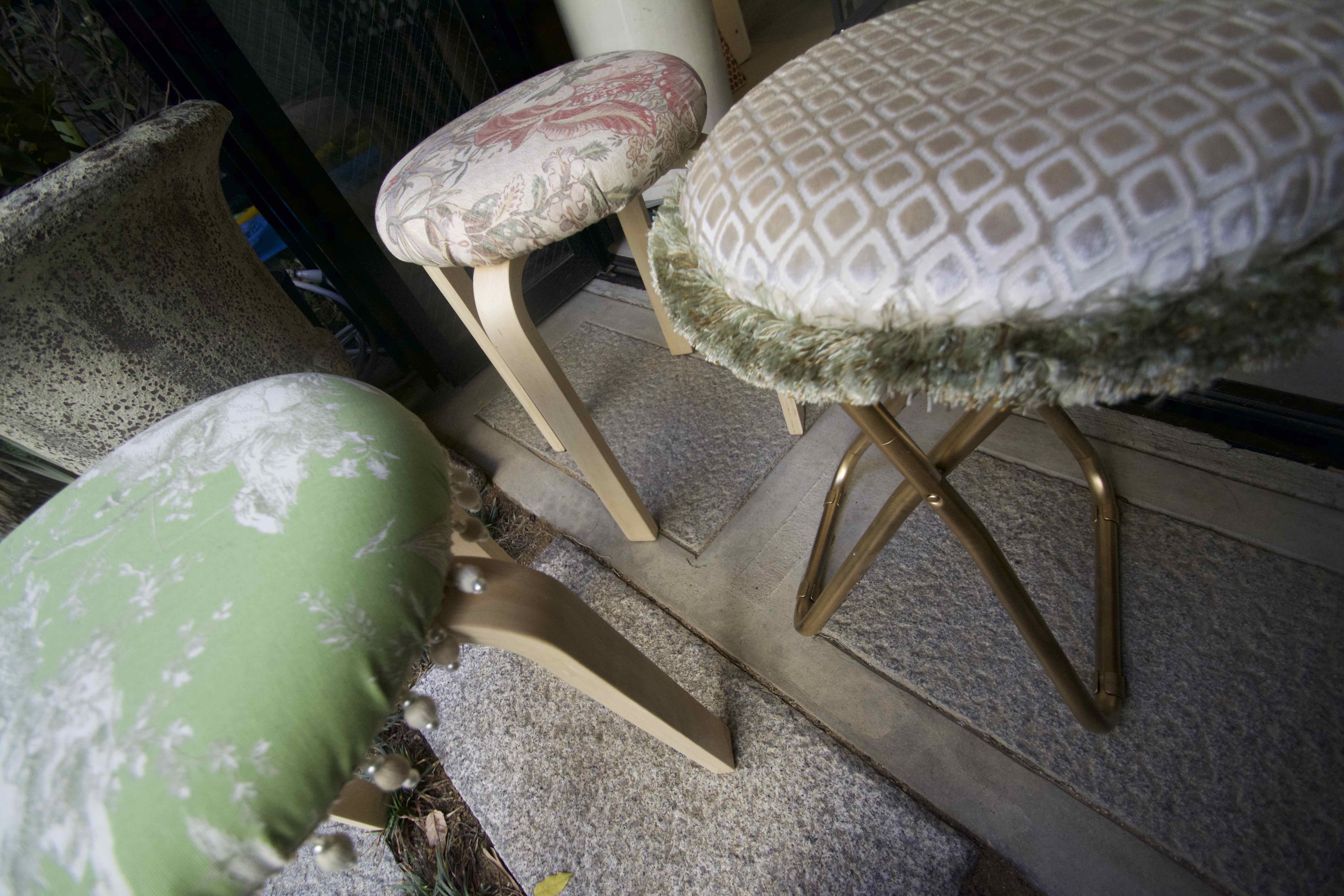リサブレアでは、最近レッスンを受講されるお客さまが増えております。最近のレッスンで制作されたスツールとクッションをご紹介いたします。