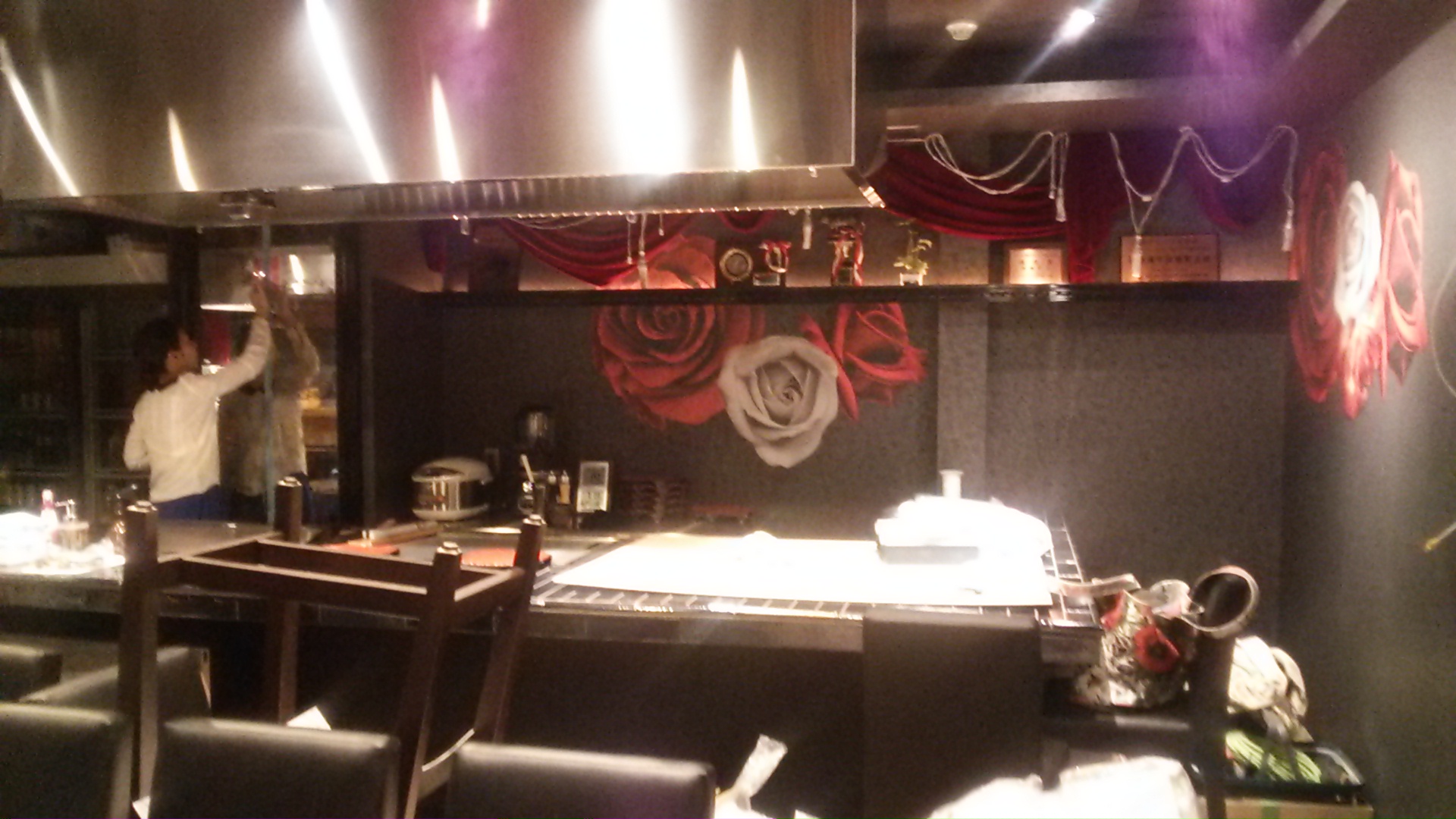 そしてこれは苦労してタッカーうちをしている現場、完成写真はシャンデリアがアメリカからとどいてから
