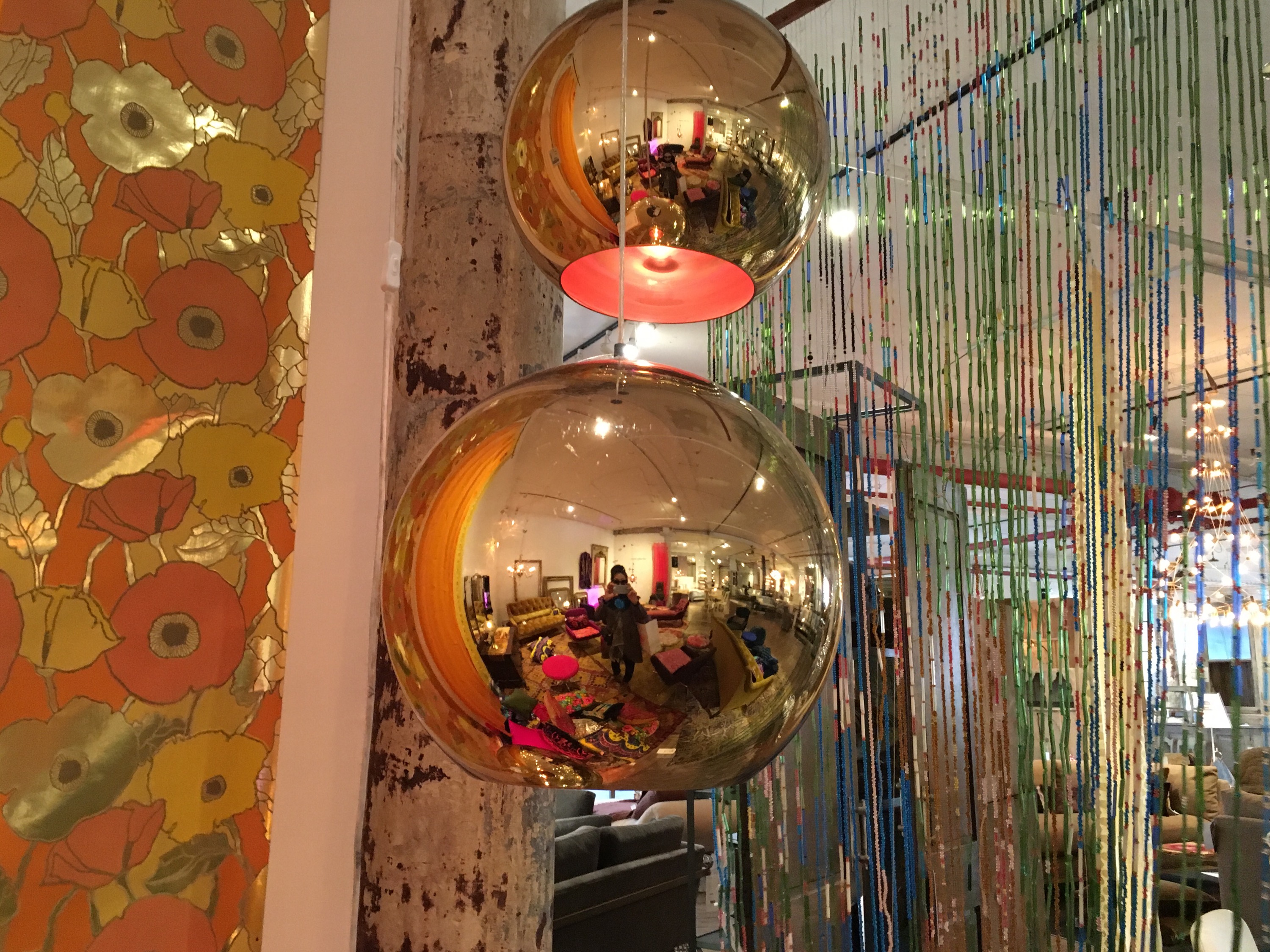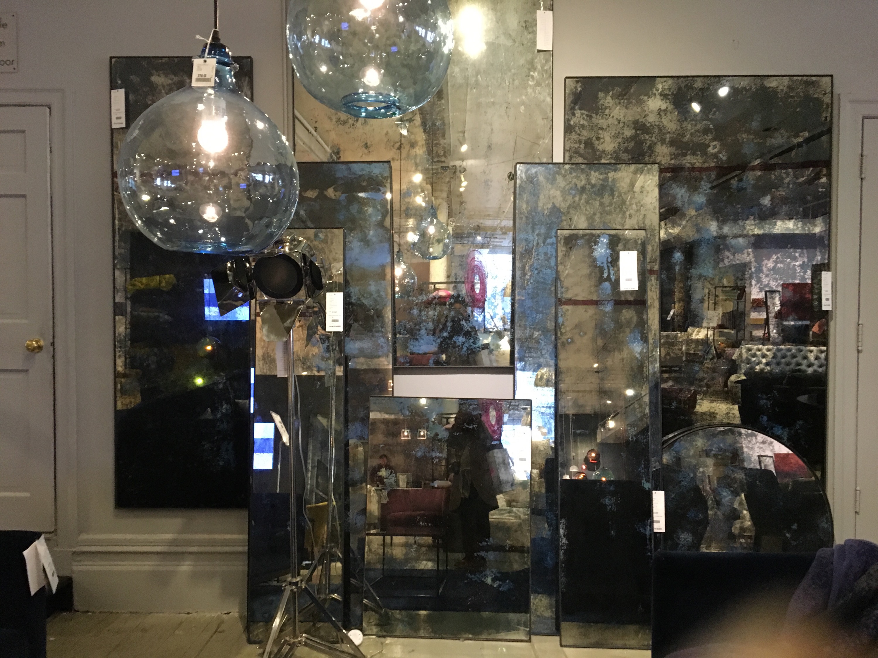 今ニューヨークで50年代やインダストリアルな照明がトラディショナルなインテリアに散逸。アンティークミラーも赤やブルーが浮き出てコンテンポラリーアートのように感じるものがなんか新しい!