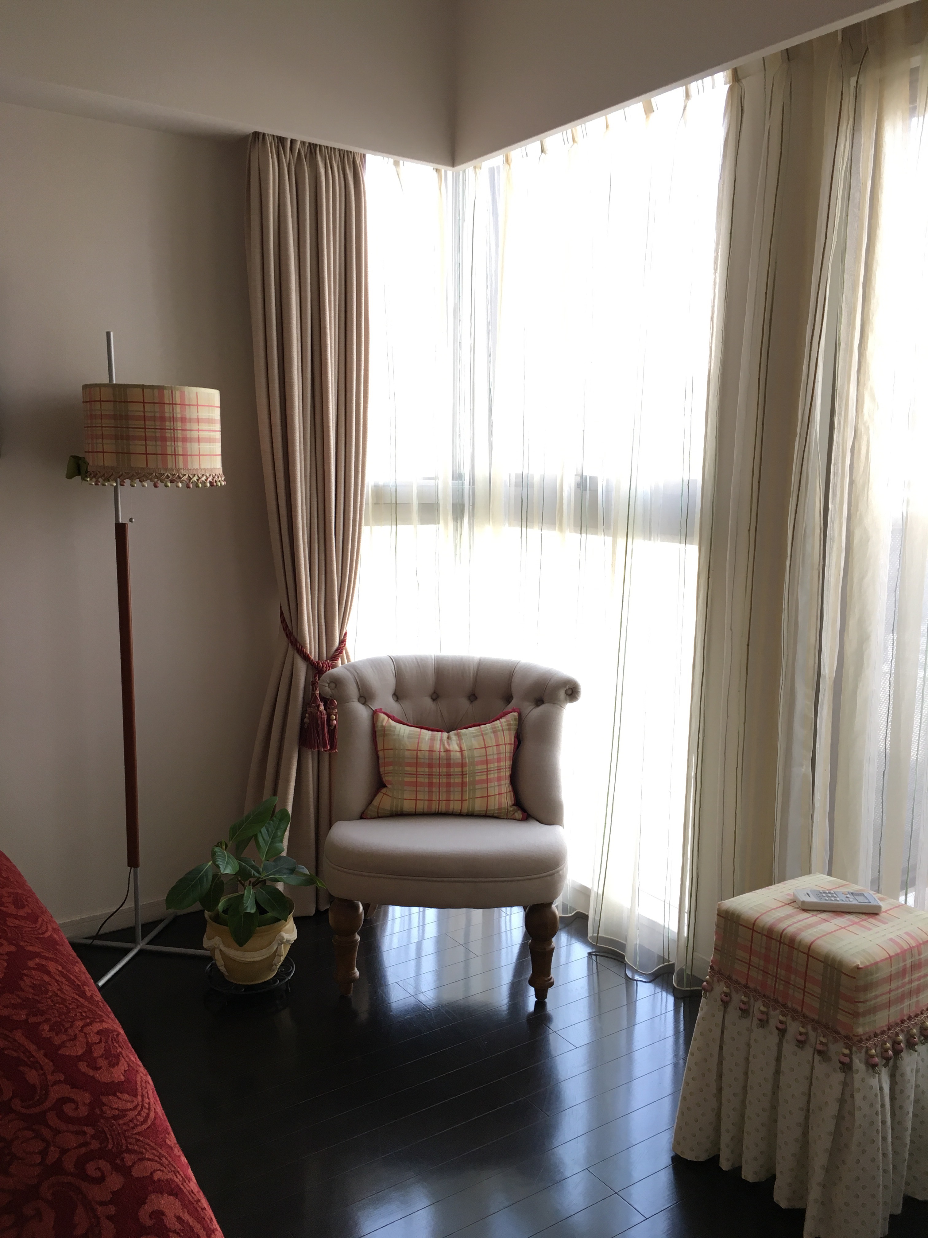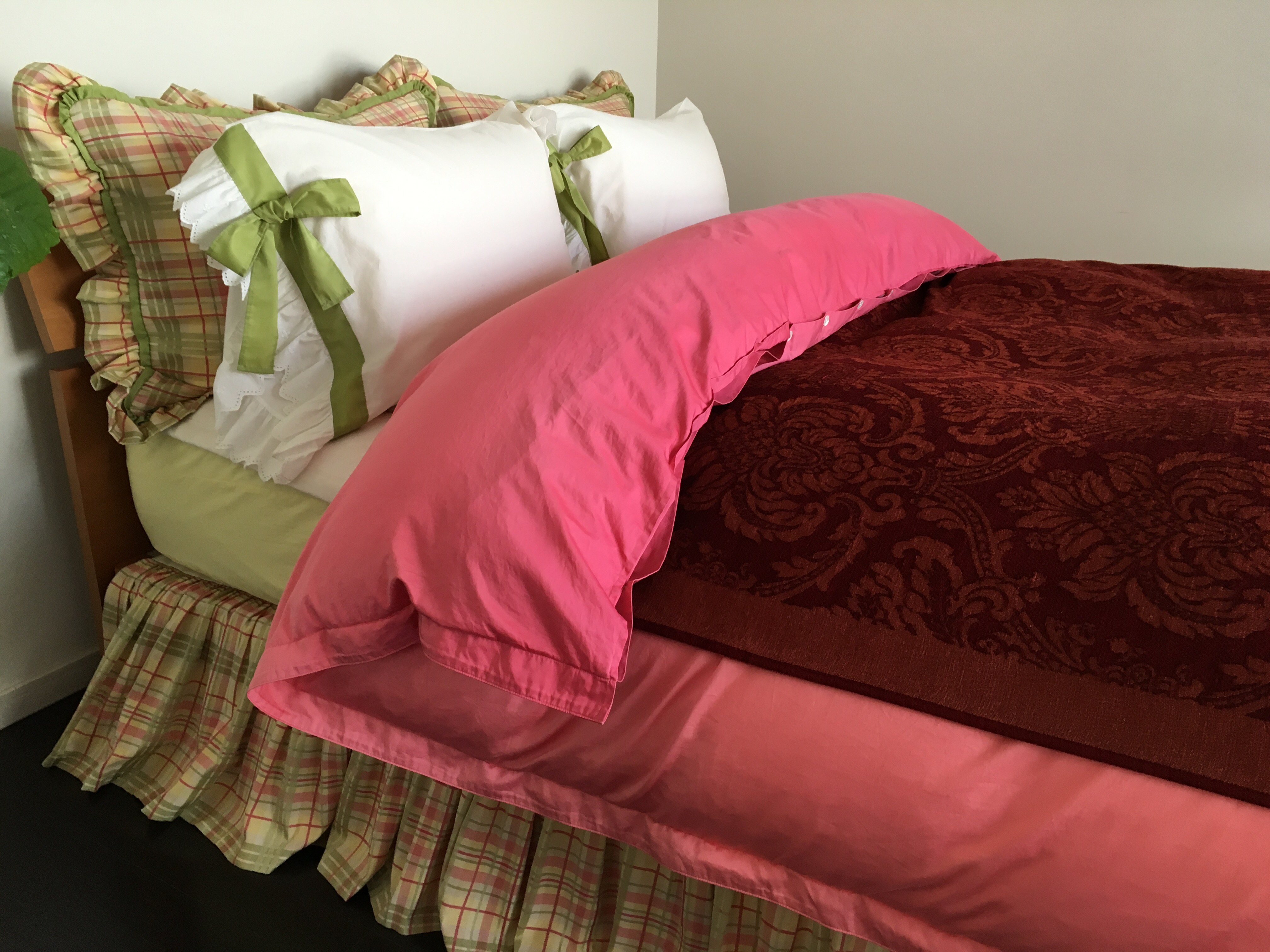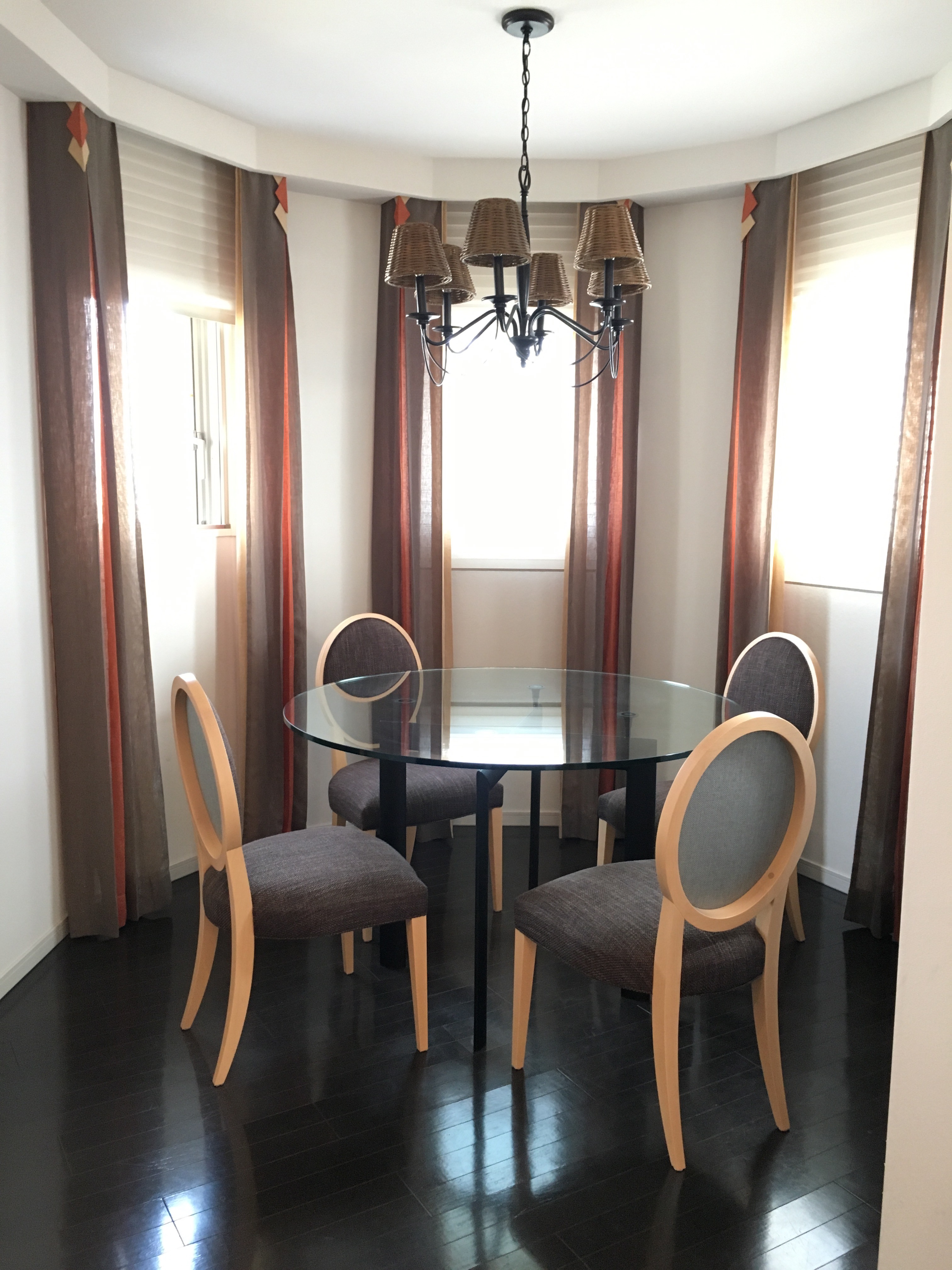 8年前にカーテンさせていただお家にAD COREのダイニングチェアを入れさせていただきました。久しぶりにお伺いしてみると、自分でデザインしたにもかかわらず、自分で言うのも変だけれど何て素敵なの。今こんな提案できるかしらと思ってしまいました。使っている生地もドイツですがまさに最近の感覚、麻に光沢が方向次第で見えるような生地。またこの生地に惚れてしまいました。とても素敵にお住まいなので嬉しくなってしまいます。今回ご相談があったのはダイニングチェア、AD COREの家具は日本製にこだわり、明確なデザインポリシーがある会社です。生地が自由に替えられるので、背面裏をブルーグリーンで提案させていただきました。住まいにや生活、生き方をいつも愛でて、ケアされている人生がお住まいから感じられます。いつも感じるのですが住み手が住まいを創り、住まいが住み手を創る、こんな感覚をいつも感じさせるお客様です。寝室は手作りです。
