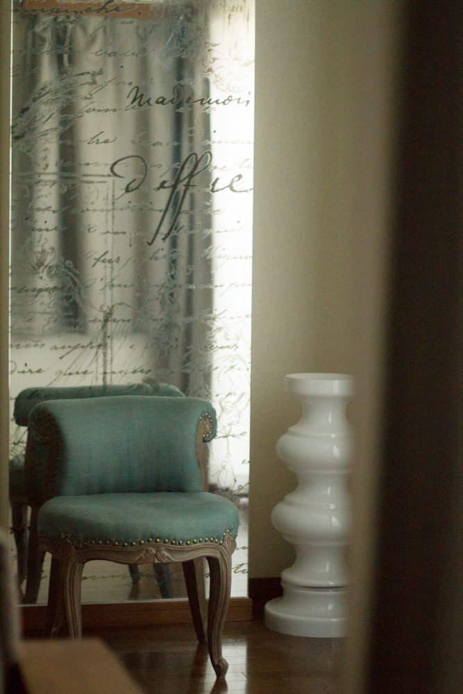 新しくお引越しされるマンションの1室に大きな鏡がある事が嫌なんです…とご相談を受け、今回ご提案させていただいたのが「ガラスフィルム」です。大きな鏡だったので、それを活かすべくガラスフィルムにクラッシックなモチーフを印刷いたしました。
