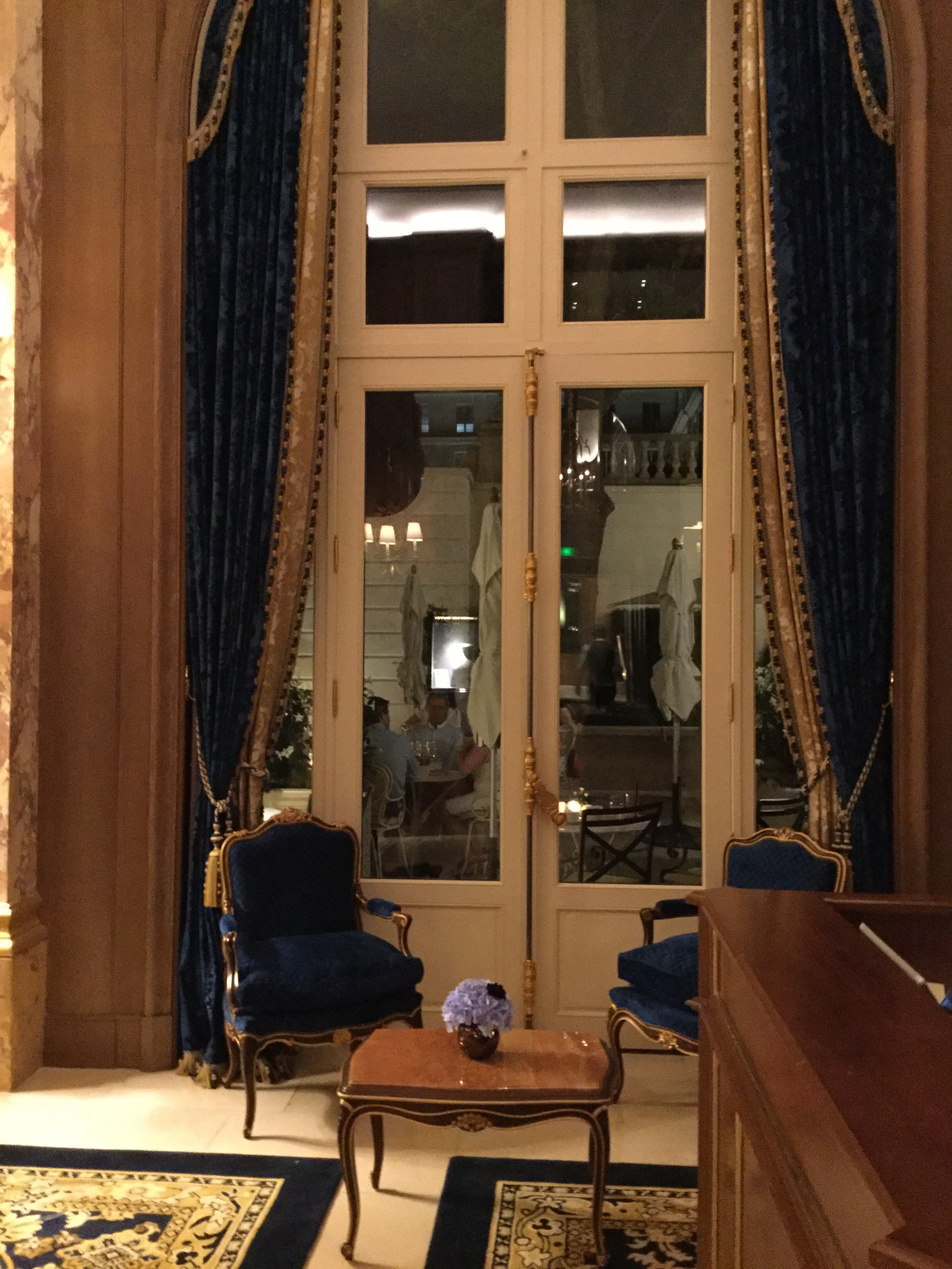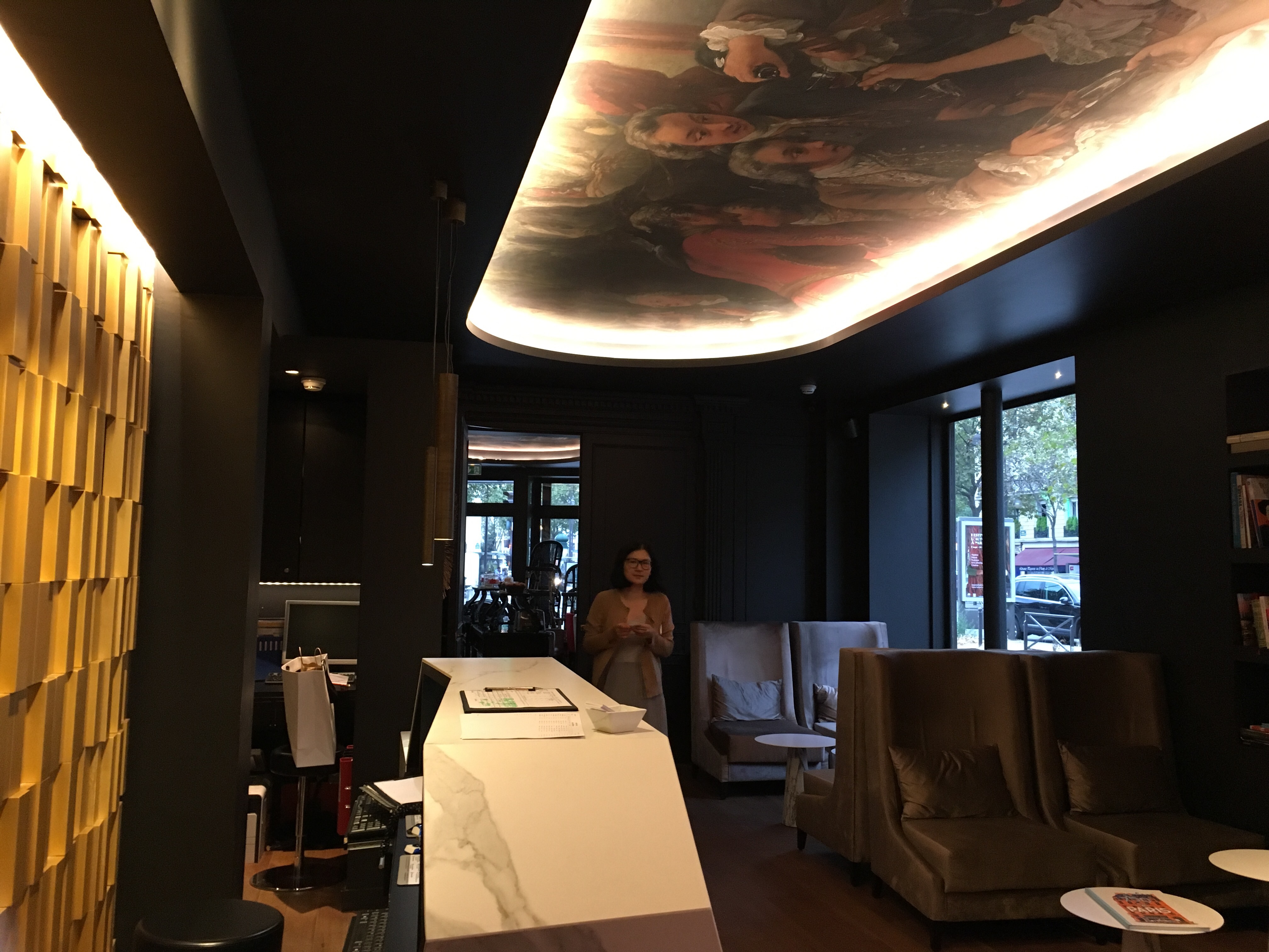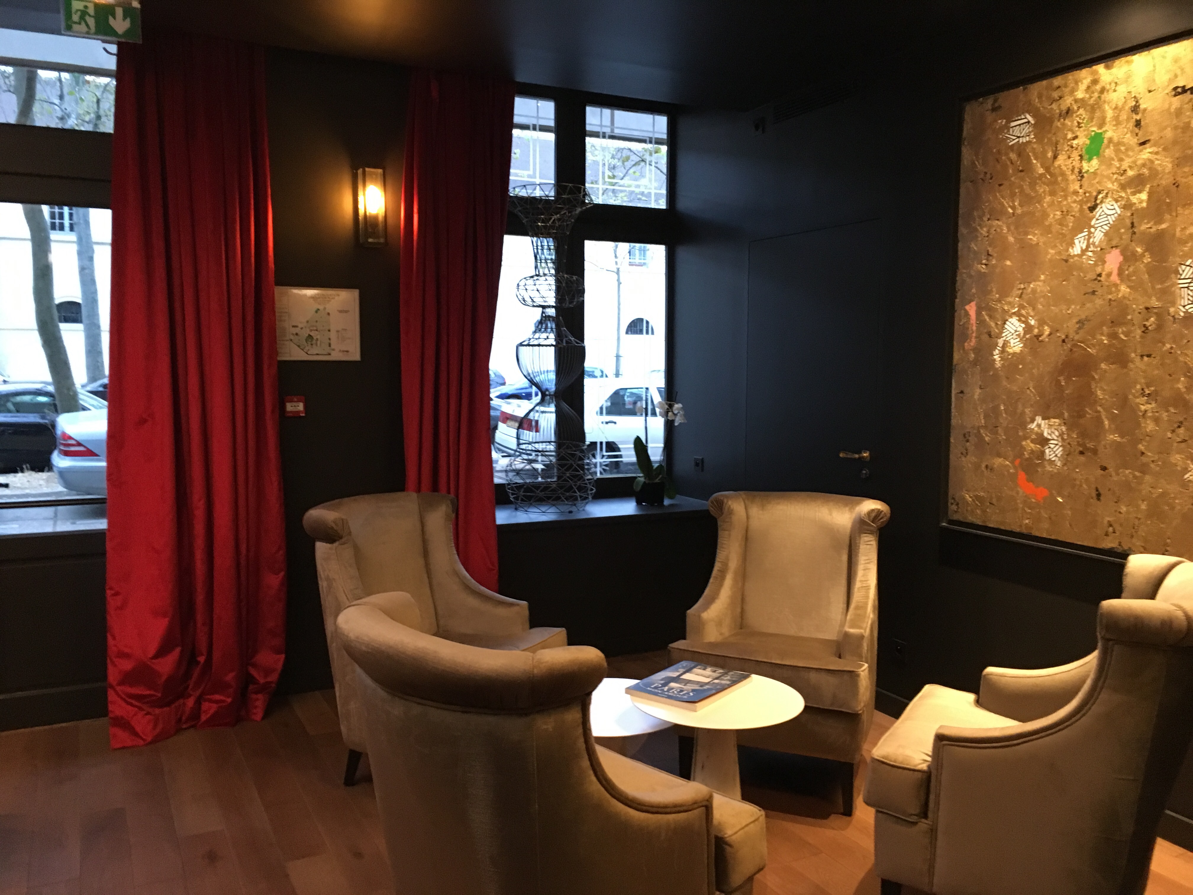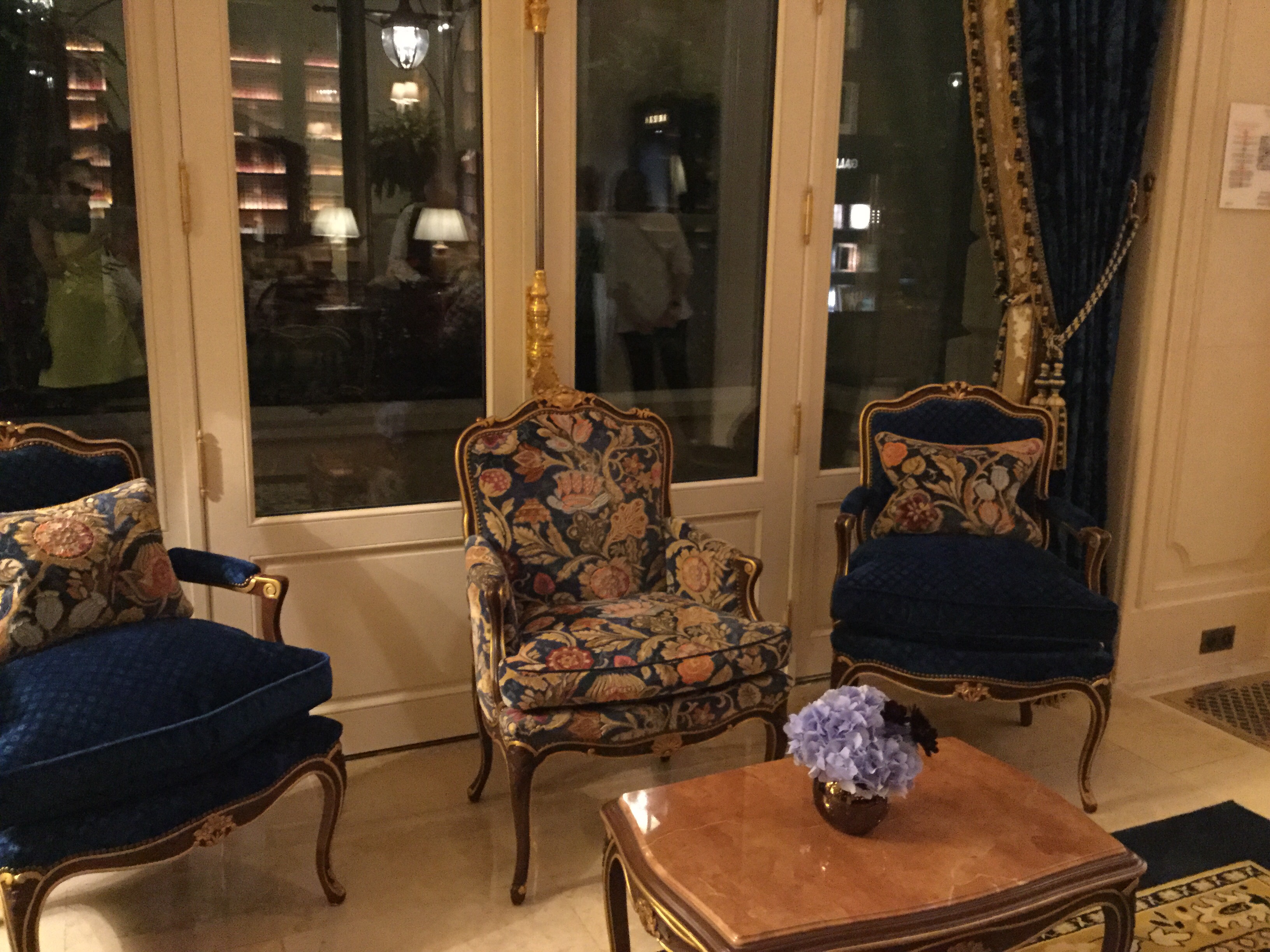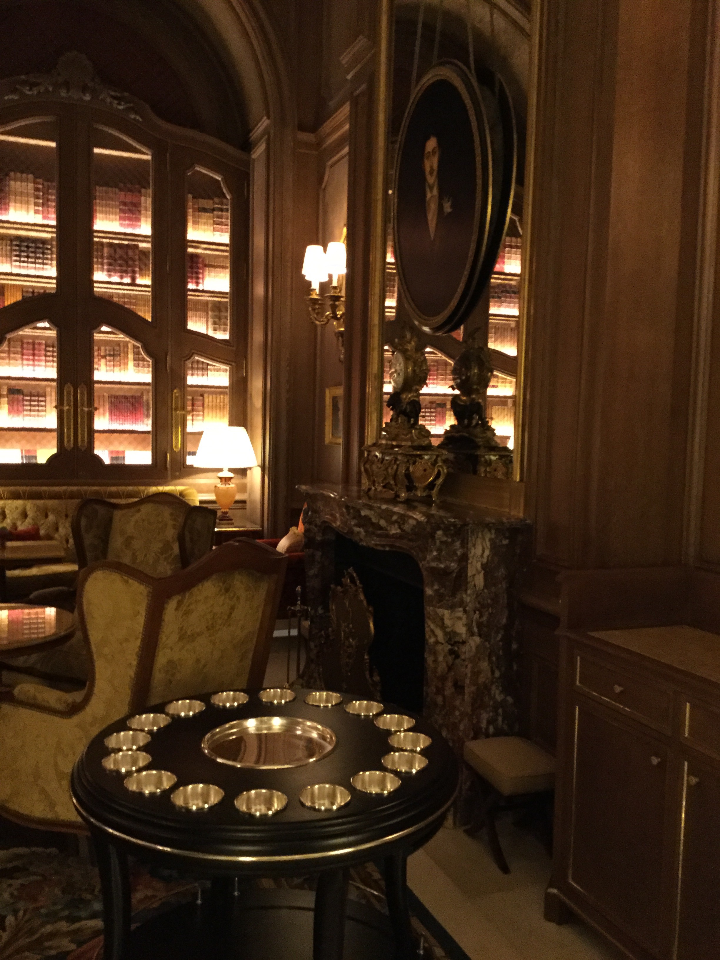 海外に行くとホテルのインテリアを見て歩くのも刺激的。いつもどのホテルに泊まるかは真剣に探します。パリはホテルが高いので、超一流のところは泊まらずに食事をしたりバーに行ったり覗きに行きます。今回まず2泊泊まったのはエッフェル塔の下の方のアートなホテル。ロビーやカフェはアートなデザインだけど、お部屋はシンプルでコストパフォーマンスは中々いい。ただあまりホスピタリティは感じません。ホスピタリティは本当に値段に応じます。今年のパリはリニューアルラッシュ。リッツやアテネプラザもリニューアルオープン。リッツもバーに行ってロビーも覗いてきました。さすがリッツ。1人でバーに入っても凄くくつろがせます。結構混んでて外のソファに10人ぐらい座って待ってたのですが、それぞれのグループに何分か毎にあなたたちを忘れてませんよというように今どんな感じか知らせに来るのです。何人かが入っていくと外にあったソファのクッションを別なボーイさんがどこからともなく現れて、クッションの形を整えているのです。そうなんですよね。カーテンもクッションもファブリックでできたソフトファニシング系はスタイリングが大事なんです。バーも適度に小さくてインテリアもイギリスの上流の男性のカントリーのお家の書斎のインテリア。壁にも溢れんばかりの思い出の品のような物が飾ってあります。もとてもCozyです。残念ながらお客さんが沢山いるので写真は撮れなかったのですが、チラッと一枚だけ。