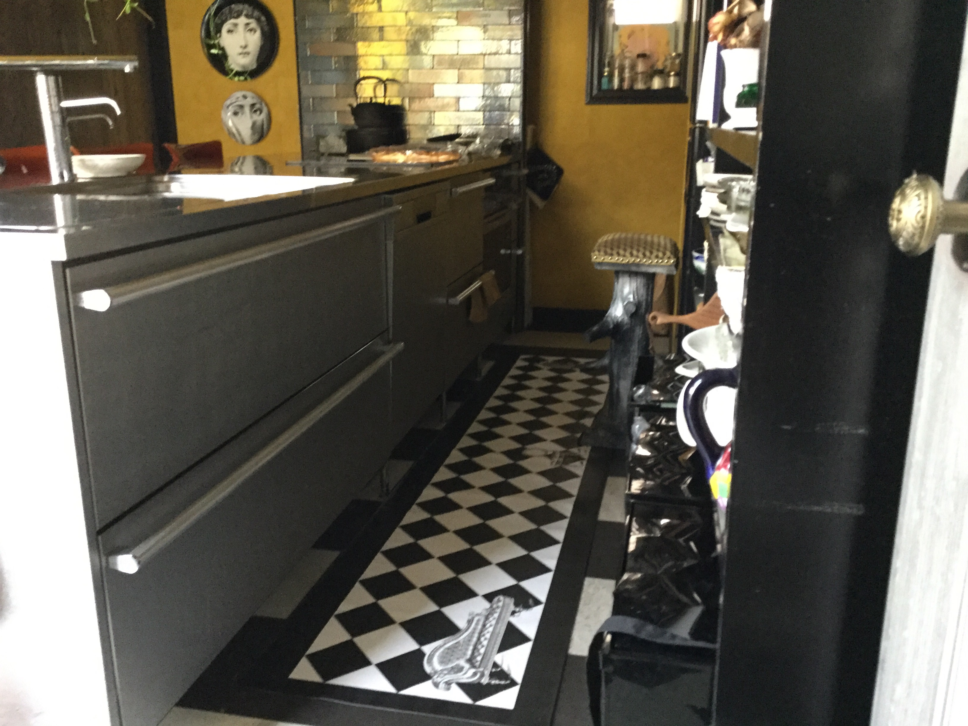 長いバージョンのリサブレアオリジナルキッチンマットを作って使って見ました。確かに皆が求める様に長いマットは使い易い。今回の模様は18世紀頃の男性のファッション。
