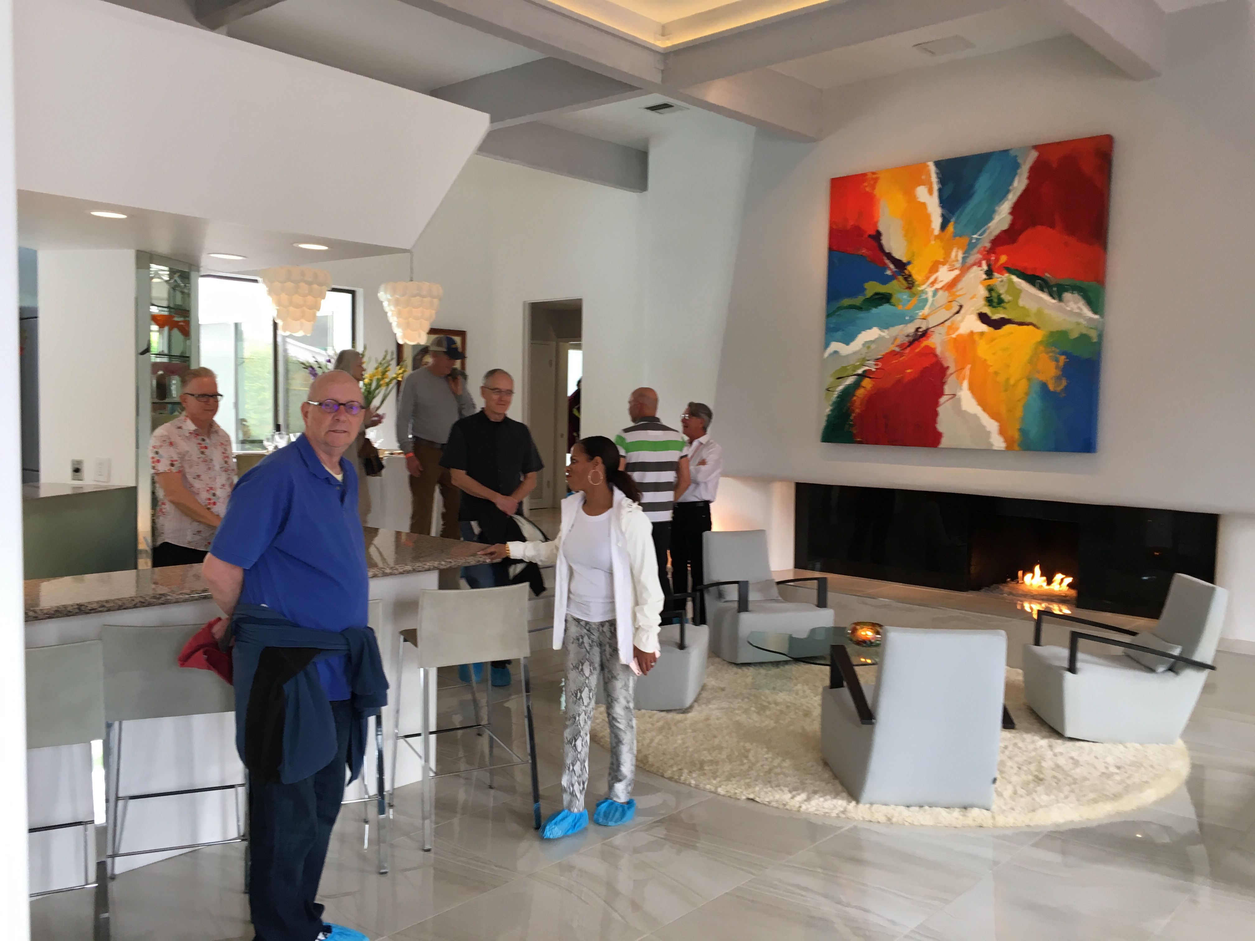 パームスプリングスは有名な俳優やセレブリティの別荘が多くあり、さらにリタイアの金持ちやオシャレなゲイの人達をコミュニティに歓迎しています。ミッドセンチュリーツアーで訪れたお家の住人もほとんどがゲイの人達でした。オシャレでファンピープル達です。外から見ると小さそうですが、中は5ベッドルーム6バス。6件訪れましたが、全てゴルフ場に面していて、インテリアも素晴らしい。ブログでは少ししかアップしませんが、近いうちにはセミナーで皆さんに見ていただきたいです。