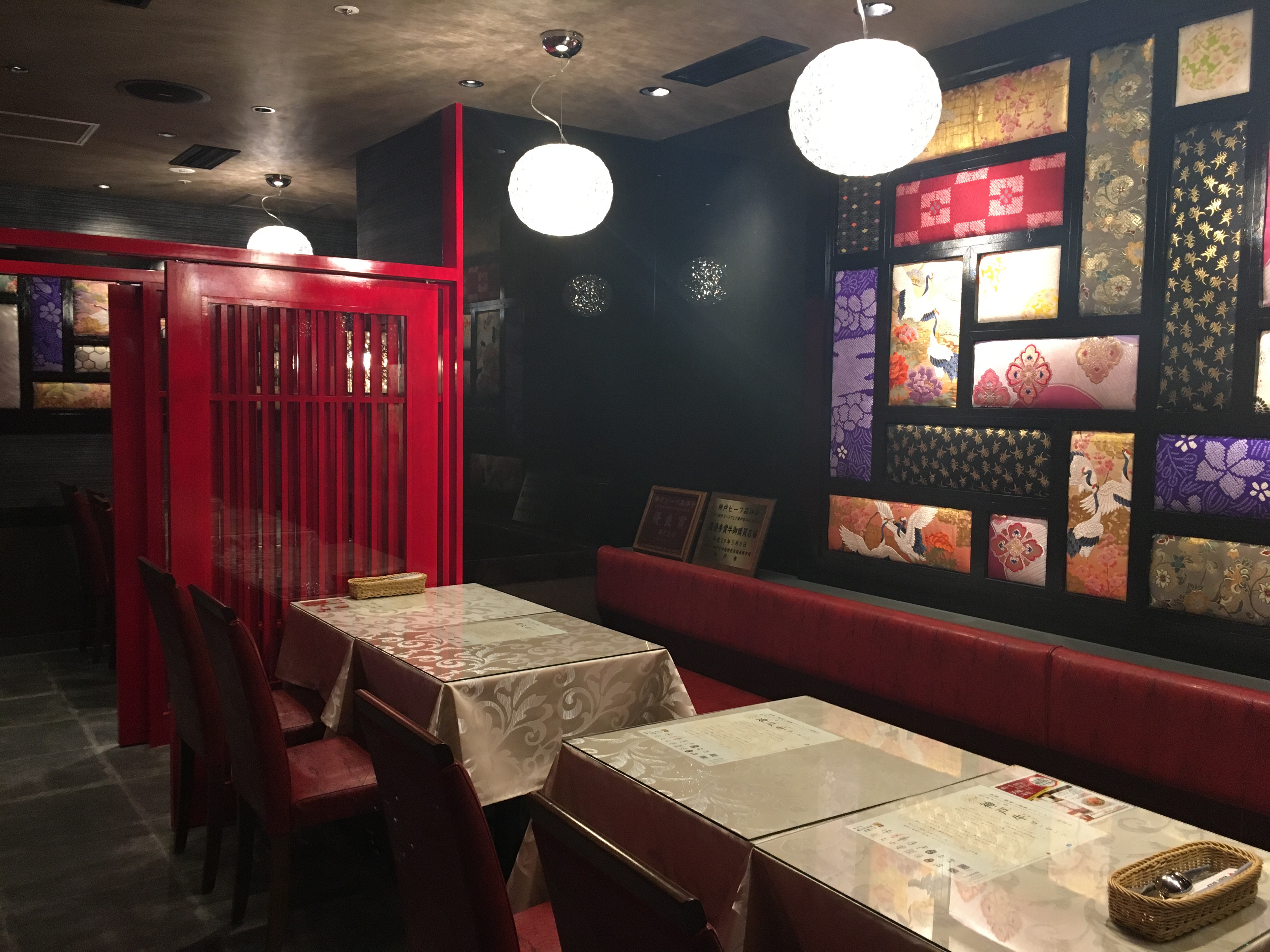 大阪松竹座の地下のステーキハウスデザインさせていただきました。ジャパニーズテイストのオリジナルプリントに着物の生地を組み合わせたパネルがアクセント。着物の柄の組み合わせは工夫が必要。実際に合わせてみると使う生地によって表情が変わります。